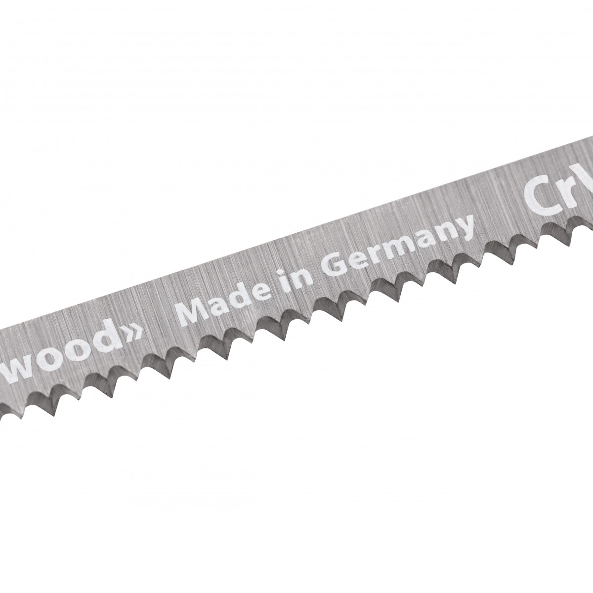 • Максимально чистый рез — полотна изготовлены в Германии на высокотехнологичном производстве, подверглись лазерной раскройке профиля, автоматизированной заточке и шлифовке.