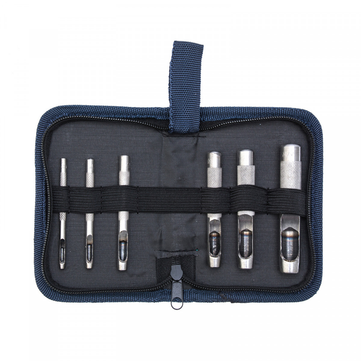 Набор пробойников для кожи Сибртех 18309, 9 шт. в чехле, позволяет пробить отверстия диаметром 2, 3, 4, 5, 6, 8, 9, 10 и 13 мм посредством ударного воздействия от киянки. Инструменты предназначены для работы с плотными материалами: кожей и резиной. Благодаря высокоточной прецизионной заточке режущих кромок пробойники выполняют ровный и качественный рез.