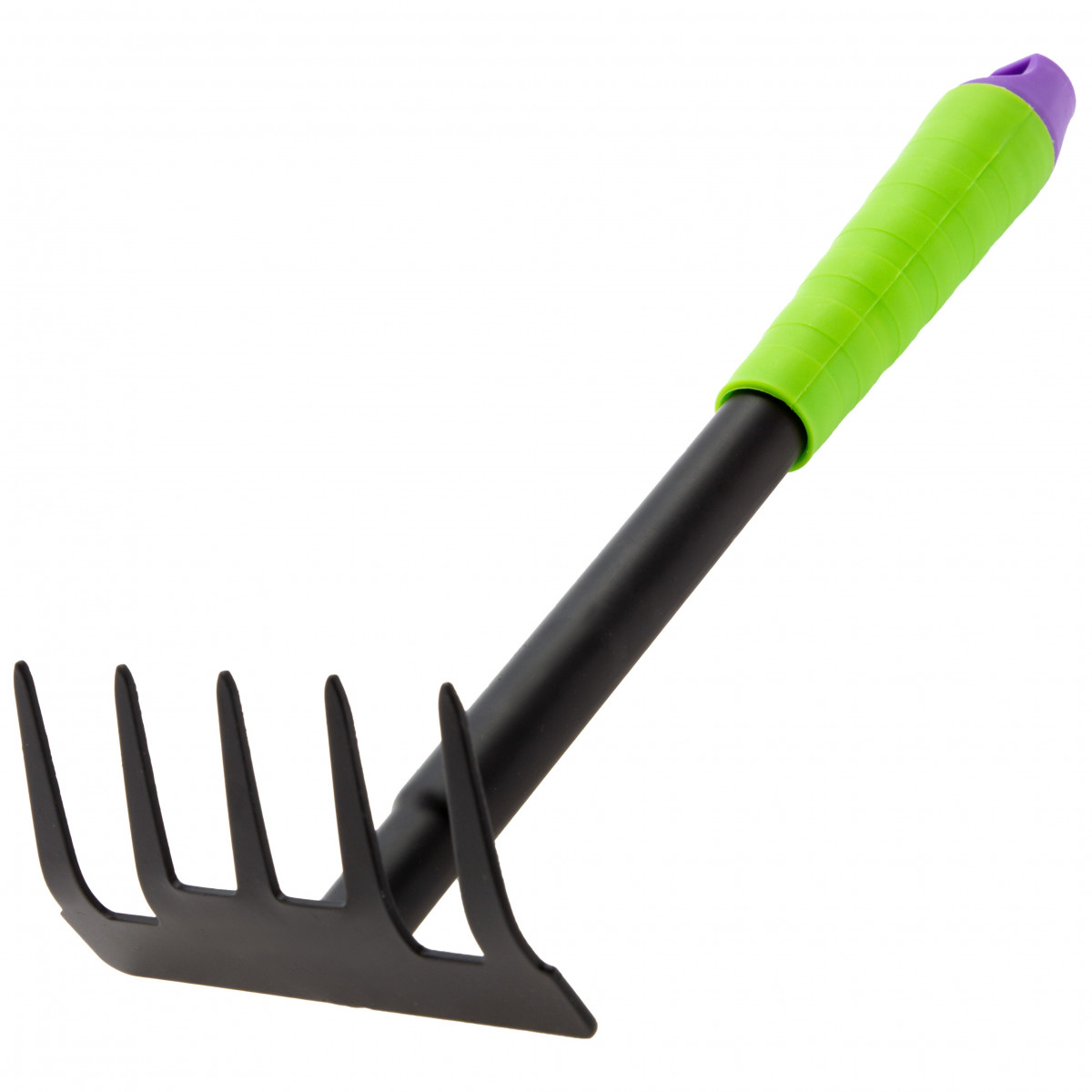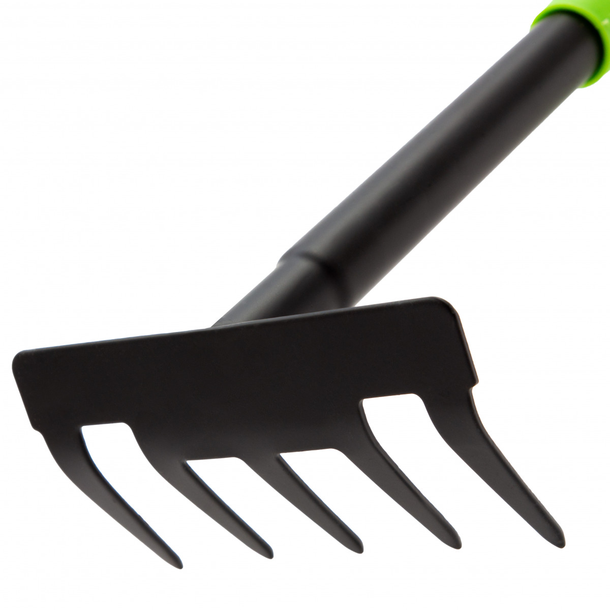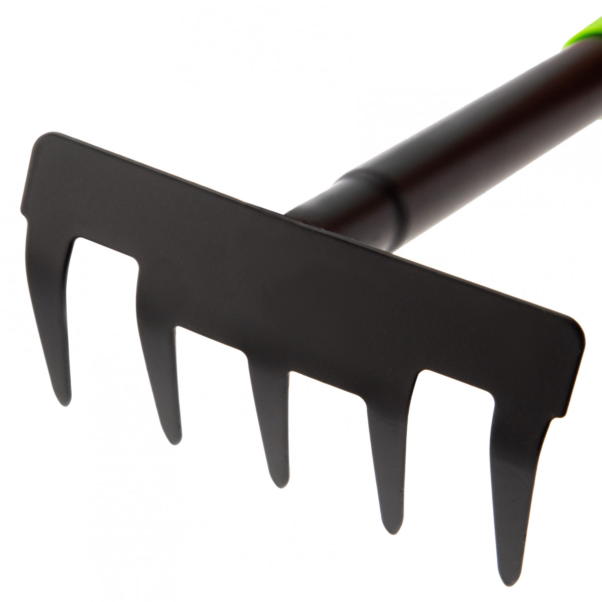 • Качественная аэрация — рыхлитель и классические грабли с заостренными зубьями легко проникают в почву.