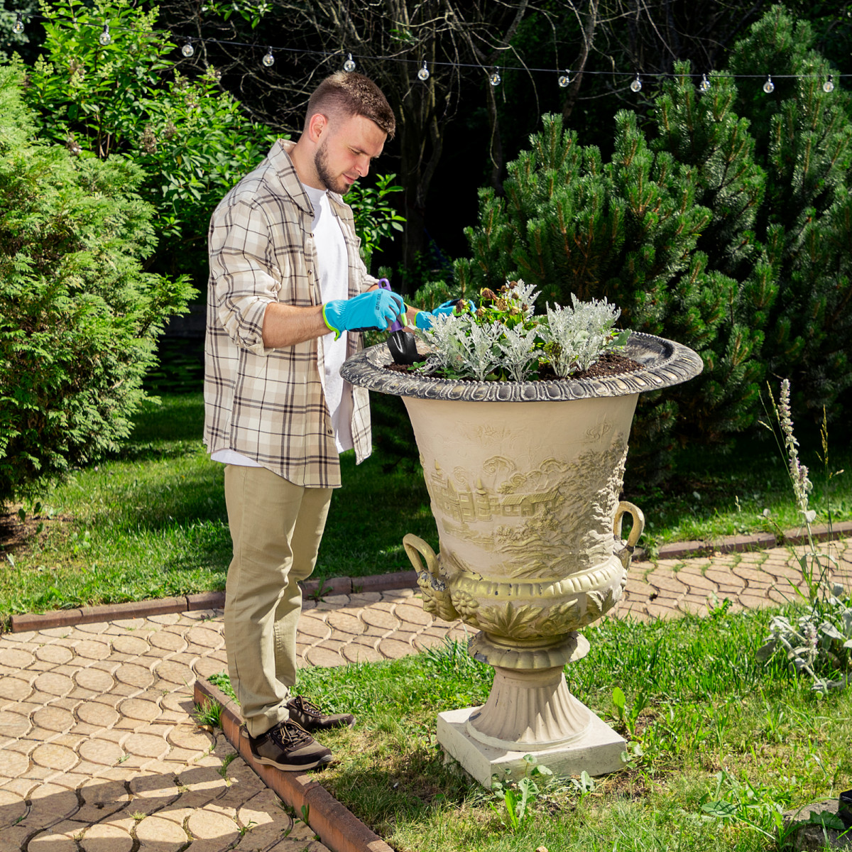 • Эргономичность — пластиковые ручки совка и мотыжки имеют рифленую поверхность и не выскальзывают из ладони, рукоятки секатора с подпальцевыми выемками обеспечивают надежный хват.