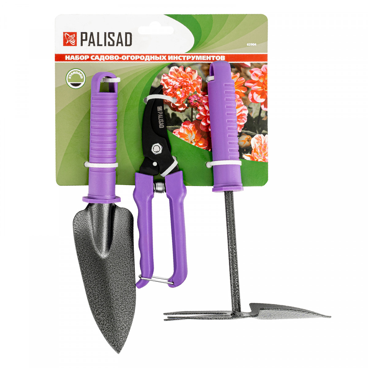 Набор садового инструмента с секатором, пластиковые рукоятки, 3 предмета, Standard, Palisad
