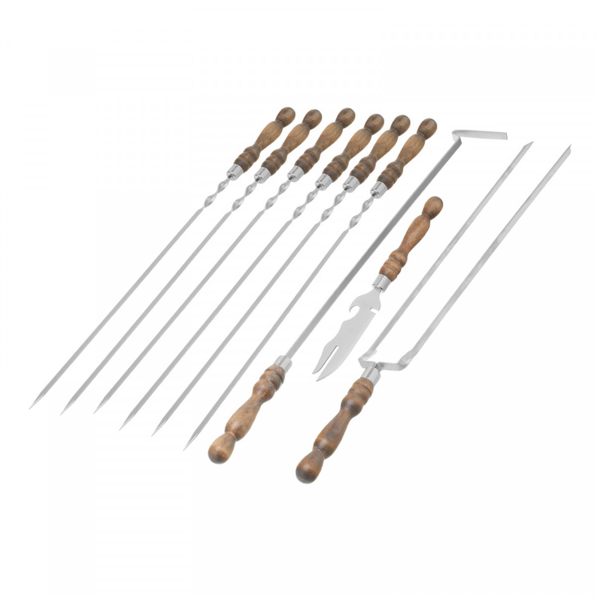 - Комфортное использование — отполированные рабочие части шампуров имеют гладкую поверхность, поэтому на них легко нанизывать мясо и овощи.