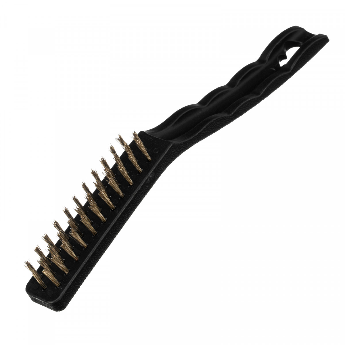 - Высокий ресурс — витая стальная проволока устойчива к деформации, латунированное покрытие защищает щетину от коррозии.