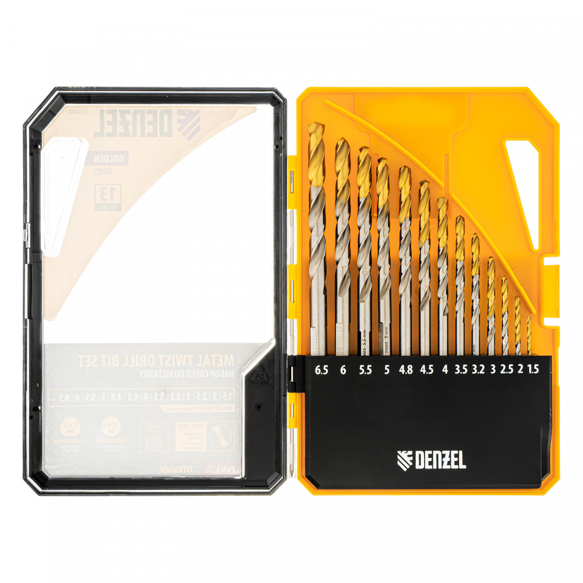 Набор сверл по металлу, 1,5-6,5мм, Р6М5-TiN, Golden Tip, 13 шт Denzel