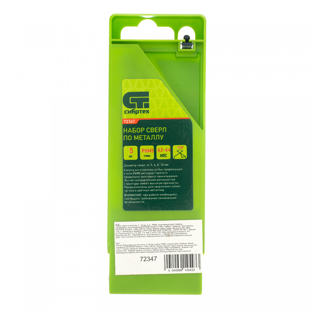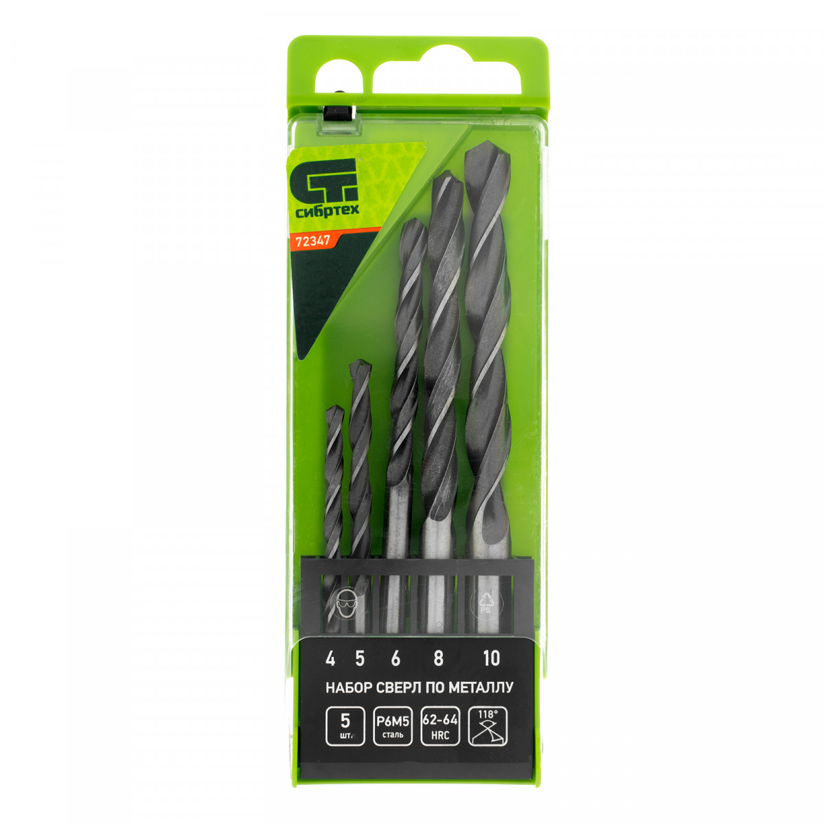 Набор сверл по металлу, 4-10 мм, 5 шт, Р6М5, пластиковый кейс, Сибртех