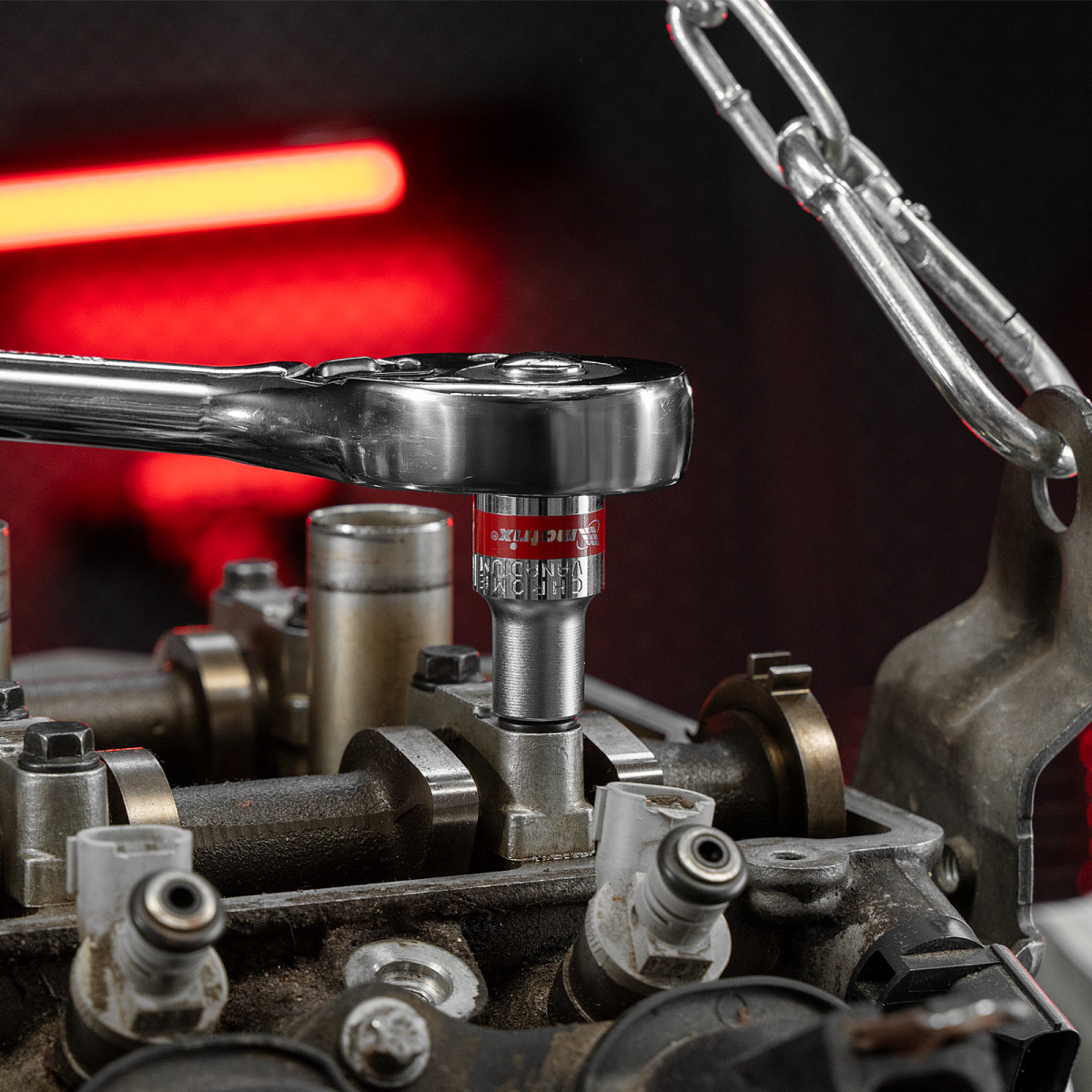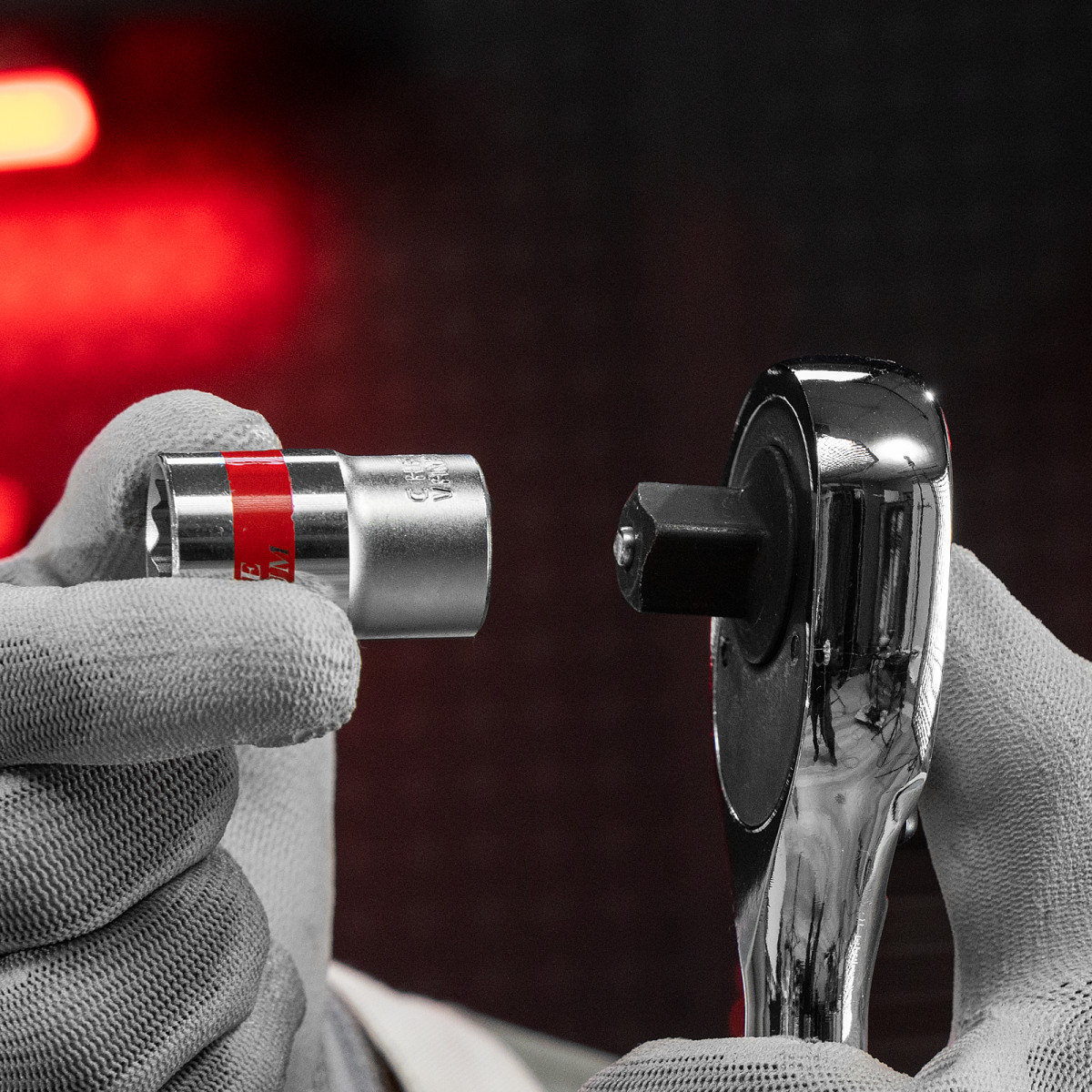• Быстрый поиск нужной торцевой головки — на корпусах насадок имеются красные полоски и маркировка с обозначением размера.