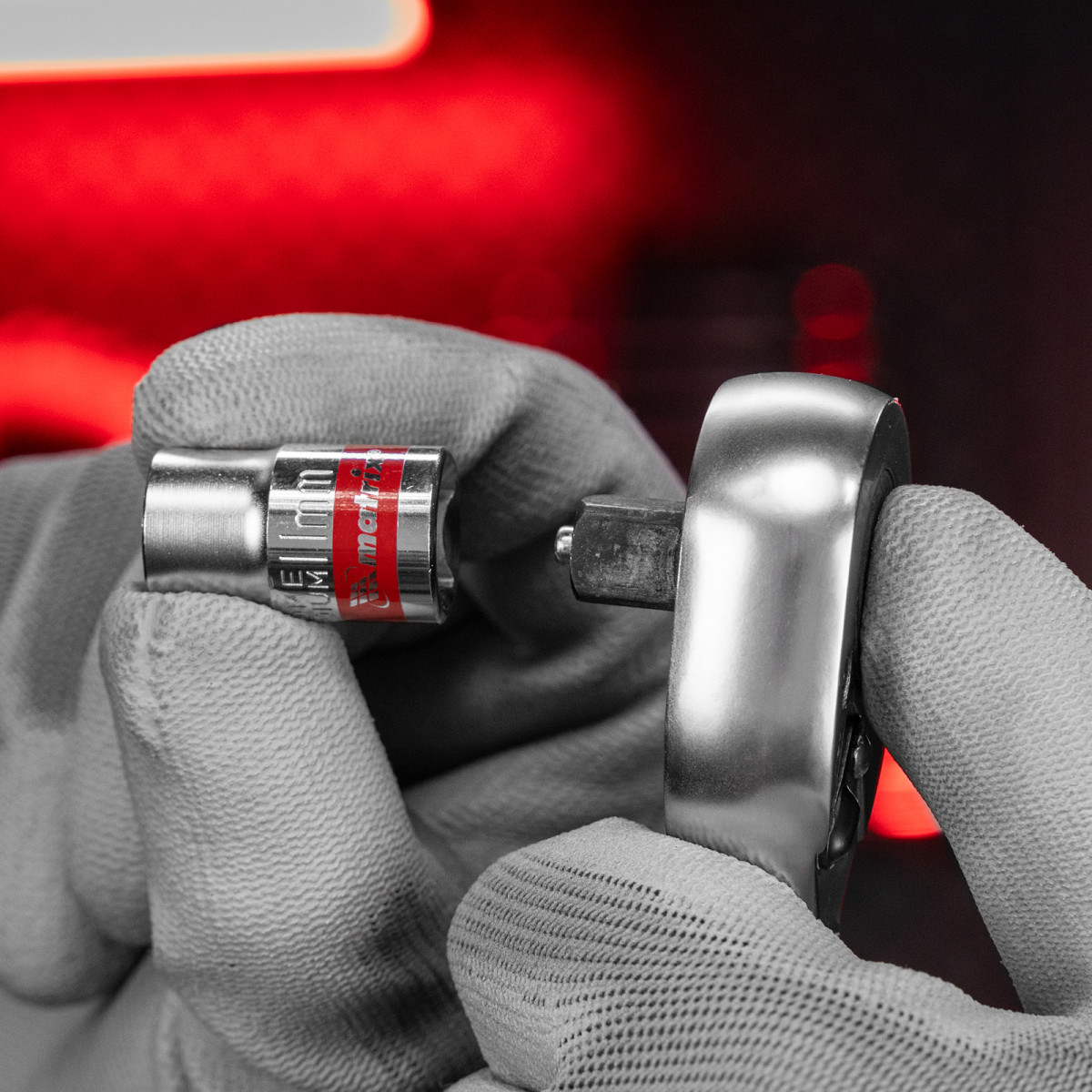 • Быстрый поиск нужной насадки — каждая торцевая головка маркирована ярко-красной полоской и имеет обозначение типоразмера.