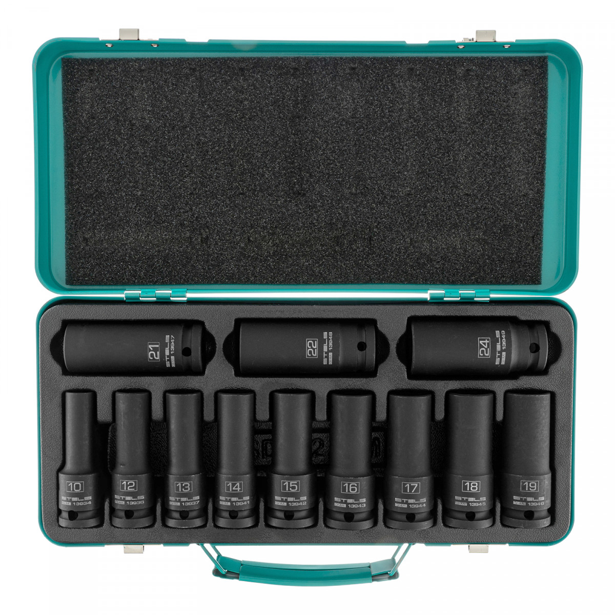Набор ударных глубоких шестигранных торцевых головок, 1/2", 10-24 мм, в кейсе 12 шт. Stels