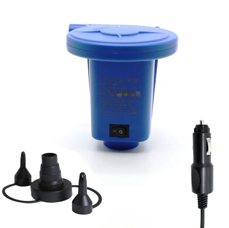 Насос электрический быстро накачивает любые надувные изделия из ПВХ: кровати, матрасы, лодки, пляжные мячи, круги, камеры для плавания и другие надувные изделия из ПВХ.