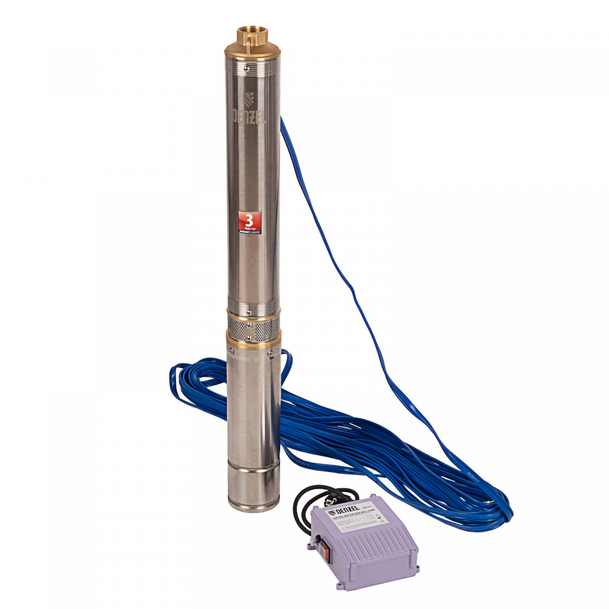 Мощный скважинный насос Denzel DWC-4-80 на 1500 Вт легко справляется с перекачиванием чистой воды с глубины до 80 м и поднимает ее на такую же высоту. С его помощью можно организовать водоснабжение частного дома, полив или орошение грунта, осушение колодца и другие бытовые цели.;Асинхронный двигатель обеспечивает производительность на уровне 5700 л/час под давлением до 8 бар. Вода забирается из пресных водоемов, скважин, накопительных резервуаров и может содержать твердые частицы размером до 0.5 мм.