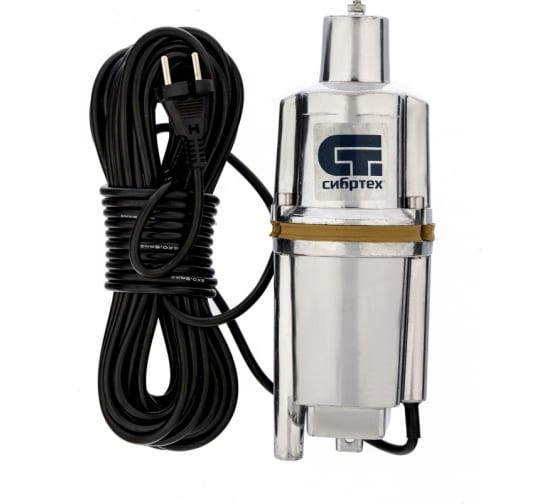 Вибрационный насос СИБРТЕХ СВН300Н-15 кабель 15 м 99306 используется для подачи воды из колодца и скважин, а также подходит для перекачивания чистой и пресной воды.