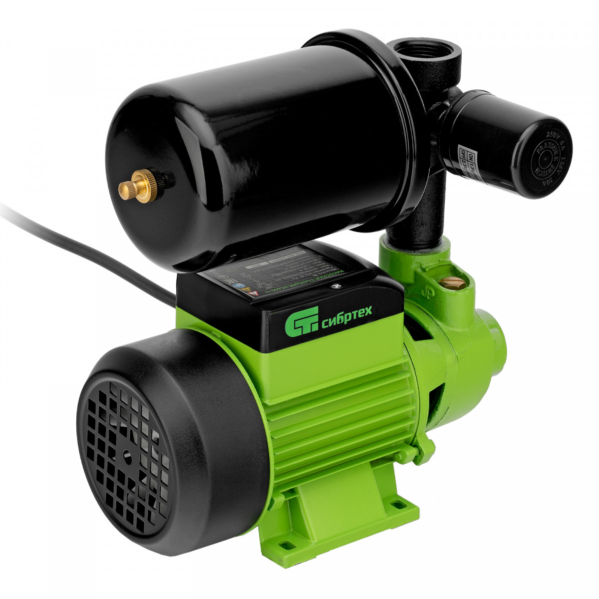 Насосная станция Сибртех НС400-Ч 97246 мощностью 400 Вт, с ресивером на 2 л, обеспечивает напор до 32 м и производительность до 2100 л/ч. Предназначена для бесперебойной подачи чистой воды с глубины до 7 м, позволяет организовать водоснабжение на дачном участке. Насосная станция поддерживает стабильное давление в напорной магистрали и оптимальна для создания системы полива.