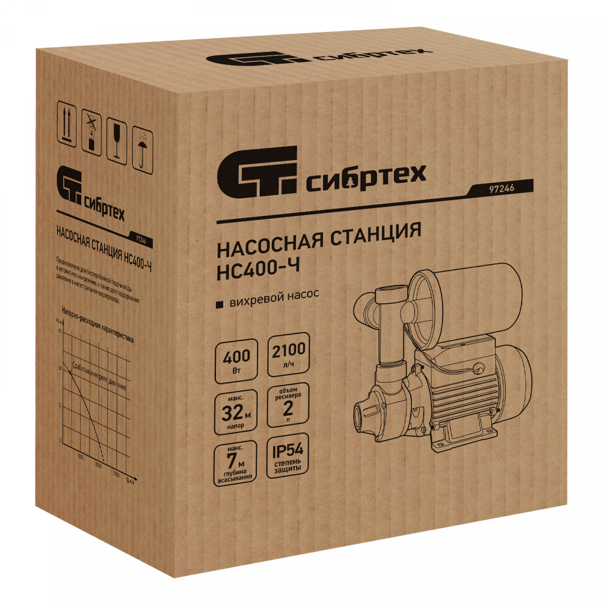 Насосная станция НС400-Ч, 400 Вт, напор 32 м, 2100 л/ч, ресивер 2 л Сибртех