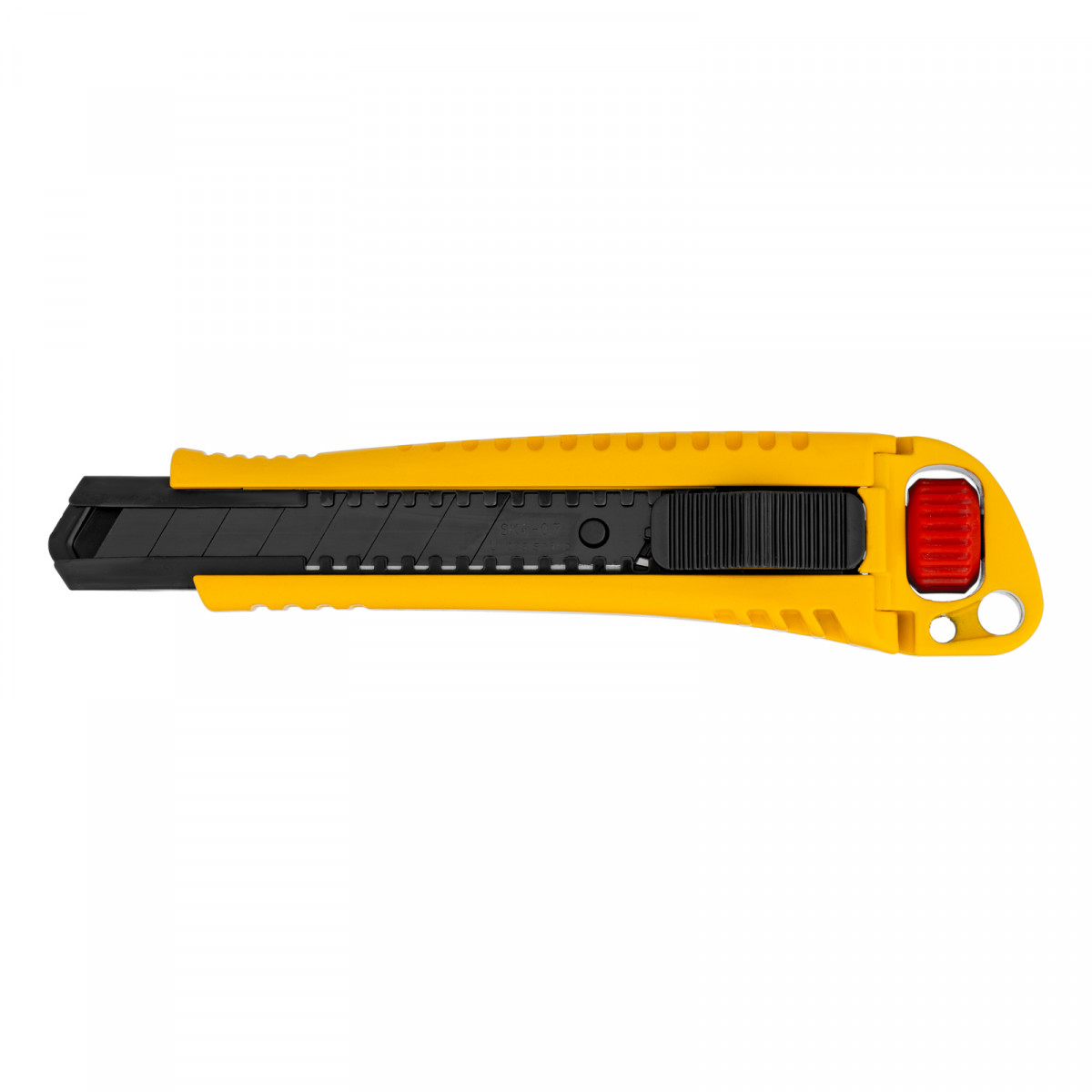 Нож Denzel 78904 выполнен в корпусе из цинкового сплава с вставкой из термопластичной резины TPR, оснащен сменным лезвием шириной 18 мм, изготовленным из стали SK4 по технологии UltraSharp, и торцевым зажимом. Сверхострое выдвижное лезвие легко режет линолеум, ковролин, бумагу, обои, картон и другие листовые материалы. Нож будет полезен для проведения профессиональных ремонтных и отделочных работ, пригодится также в домашнем хозяйстве.