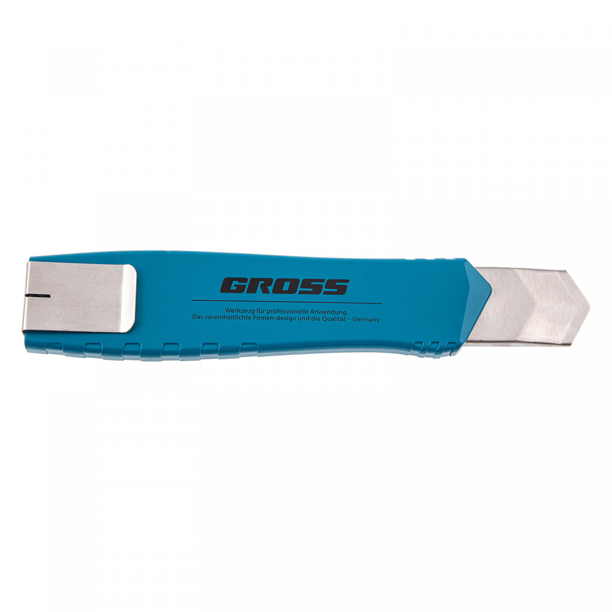 Нож Gross 78896 из стали SK-5, длиной 195 мм, в металлическом корпусе, с выдвижным сегментным лезвием шириной 25 мм, металлической направляющей и клипсой для ремня, — профессиональный инструмент, предназначенный для разрезания линолеума, картона, кожи, обоев и других материалов. Используется при проведении ремонтных и отделочных работ, будет полезен в хозяйстве.