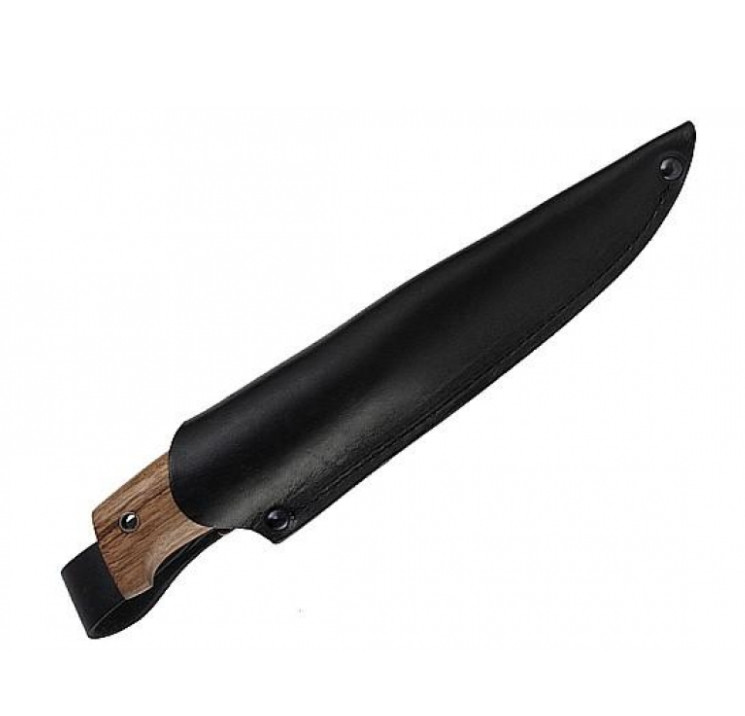 Нож "Финский" с ореховой рукояткой выполнен в классическом скандинавском стиле. Клинок прямой формы с чуть опущенным острием. Спуски выполнены клином от обуха, а сам клинок сужается от рукояти к острию. Такая форма спусков очень удобна, получила хорошие отзывы наших покупателей, и используется на многих моделях Кизляр. Отверстие для темляка оформлено развальцованной трубкой из нержавеющей стали. Ножи комплектуются кожаными ножнами погружного типа с дополнительной петлей подвеса, дающей ножнам значительную степень свободы.