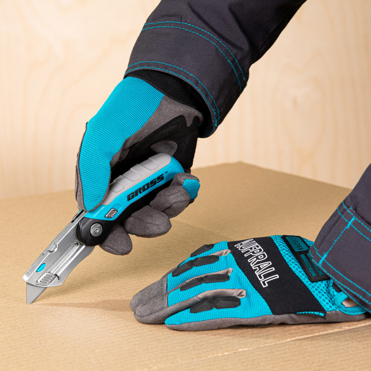 Складной ремонтно-монтажный нож Gross 78882 длиной 175 мм, с трехкомпонентной рукояткой, контейнером-держателем для лезвий и 2 запасными полотнами — режущий инструмент профессионального назначения. Используется для раскройки линолеума и обоев, разрезания картона, гипсокартона, кожи и других материалов. Нож защищен от самопроизвольного раскладывания — на боковой части имеется специальный стопор, фиксирующий держатель лезвия внутри корпуса.