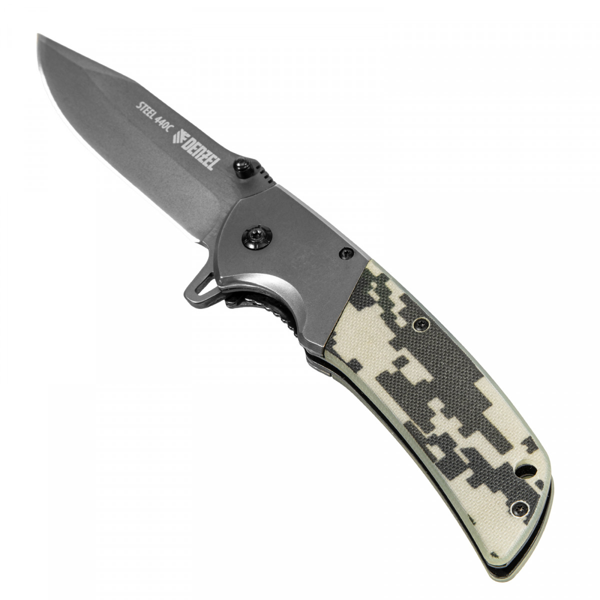 - Высокий ресурс и коррозионная стойкость — лезвие выполнено из стали 440C твердостью 56-58 HRC с покрытием TiCN.