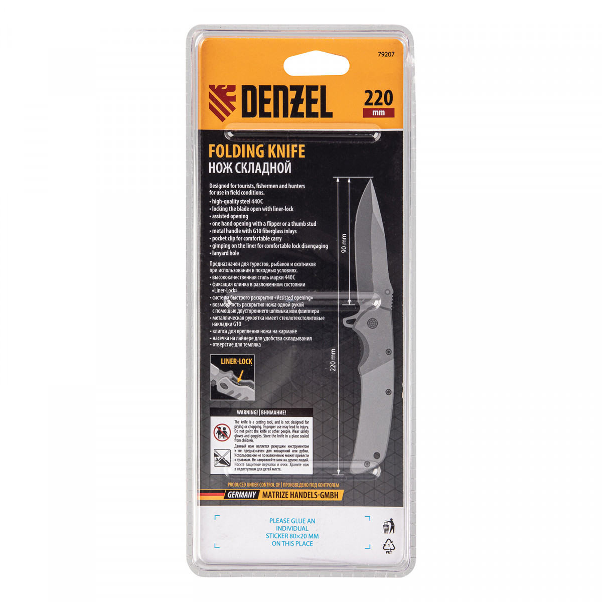 Многоцелевой складной нож Denzel 79207 длиной 220 мм, с системой Liner-Lock, накладкой G10 на классической рукоятке, находит широкое применение при активном отдыхе на природе, во время рыбалки и охоты. Флиппер помогает быстро раскрывать нож.