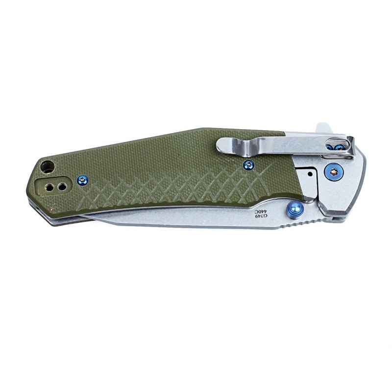 Модель Ganzo G7492 учитывает все те факторы, которые позволяют говорить, что она прекрасно подходит для туристических целей. Это складной по своей конструкции нож, переносить который можно даже в кармане. Его клинок заканчивается острием, чтобы можно было поддеть ним упаковку, сделать небольшой, но точный надрез. Материалом для этого клинка служит сталь 440С. Благодаря высокому содержанию в составе хрома, она является нержавеющей. Однако этот металл отличается еще и большой твердостью, которая помогает сделанным из него ножам долго сохранять качественную заточку. У модели Ganzo G7492 длина клинка составляет 87 мм, нож заточен по технологии plain, которая представляет собою классическую ровную заточку. Шлифовка Stone wash сделала поверхность лезвия не отражающей лучи и почти матовой.