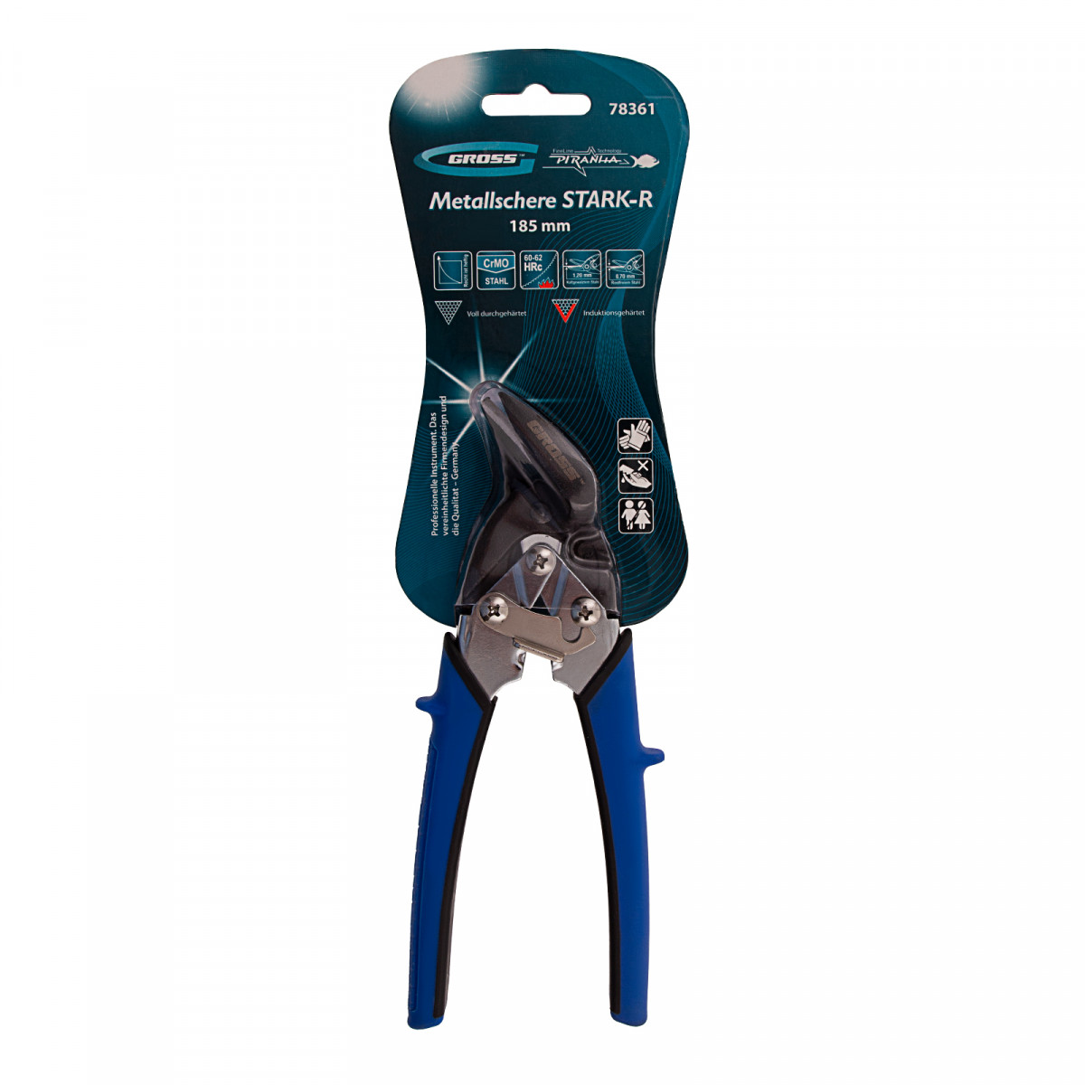Ножницы по металлу Gross PIRANHA 78361 длиной 185 мм, из стали CrMo, с двухкомпонентными рукоятками, предназначены для прямого и криволинейного правого резания листовых заготовок. Выполняют точный рез цветных металлов, а также холоднокатаной стали толщиной до 1,2 мм и нержавеющей стали толщиной до 0,7 мм. Двойной рычажный механизм экономит усилия и повышает производительность ножниц. Общая длина инструмента составляет 185 мм, поэтому он удобен для работы в труднодоступных местах. Ножницы рекомендованы для профессионального применения, пригодятся также и в быту.