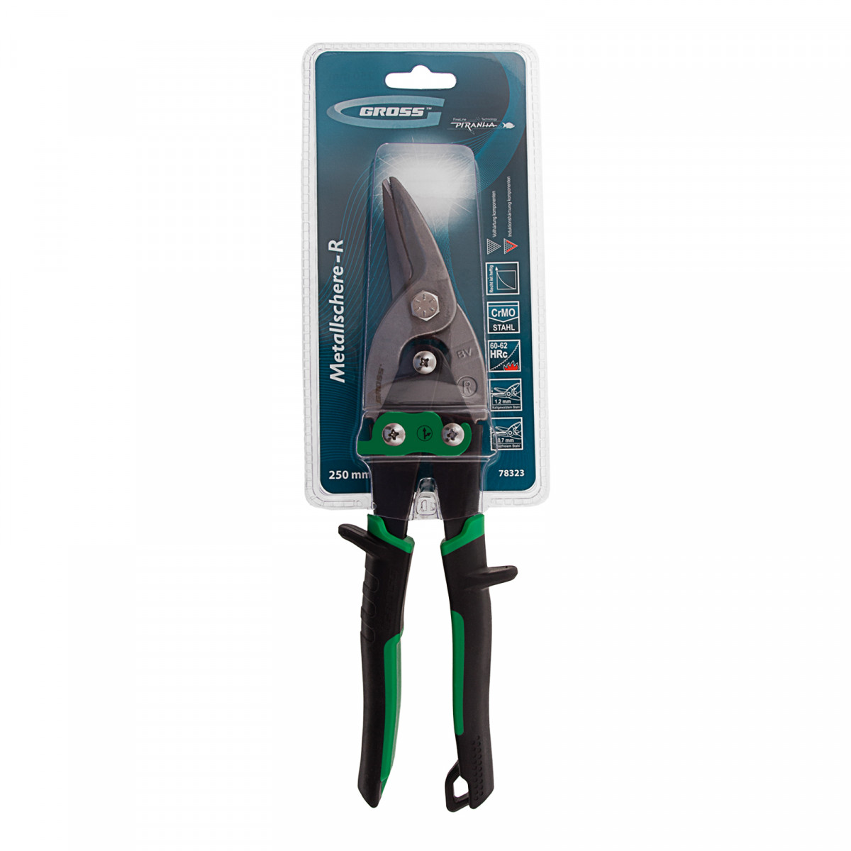 Ножницы по металлу "Piranha", 250 мм, прямой и правый рез, сталь СrMo, двухкомпонентные рукоятки Gross