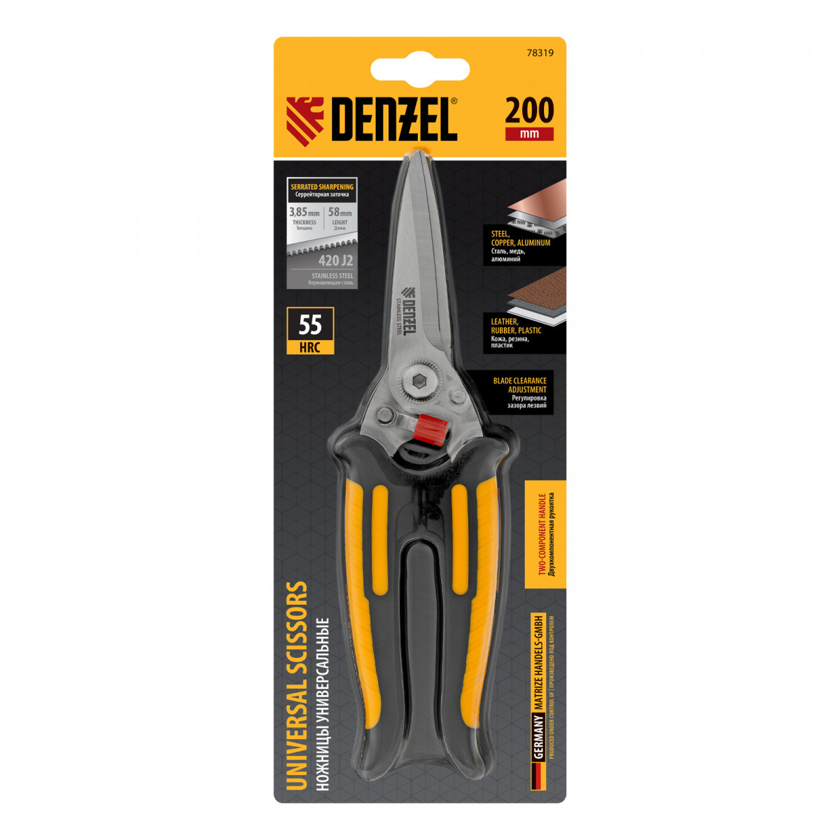 Ножницы универсальные, 200 мм, нержавеющая сталь Denzel