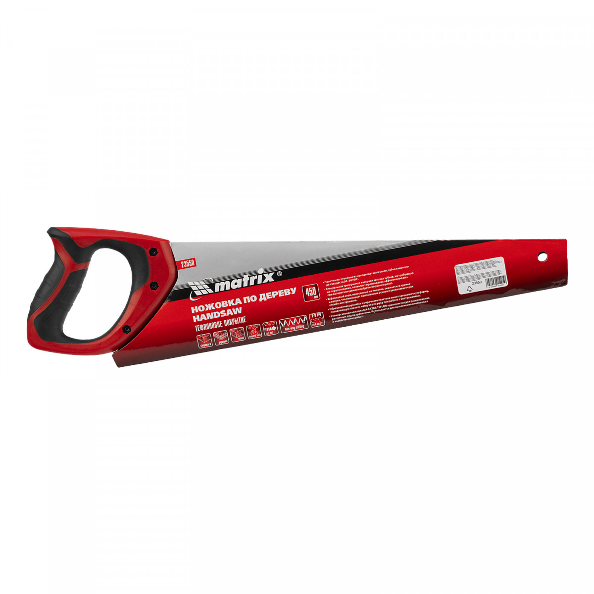Ножовка по дереву, 450 мм, 7-8 TPI, зуб-3D, каленый зуб, тефлоновое покрытие полотна, двухкомпонентная рукоятка Matrix