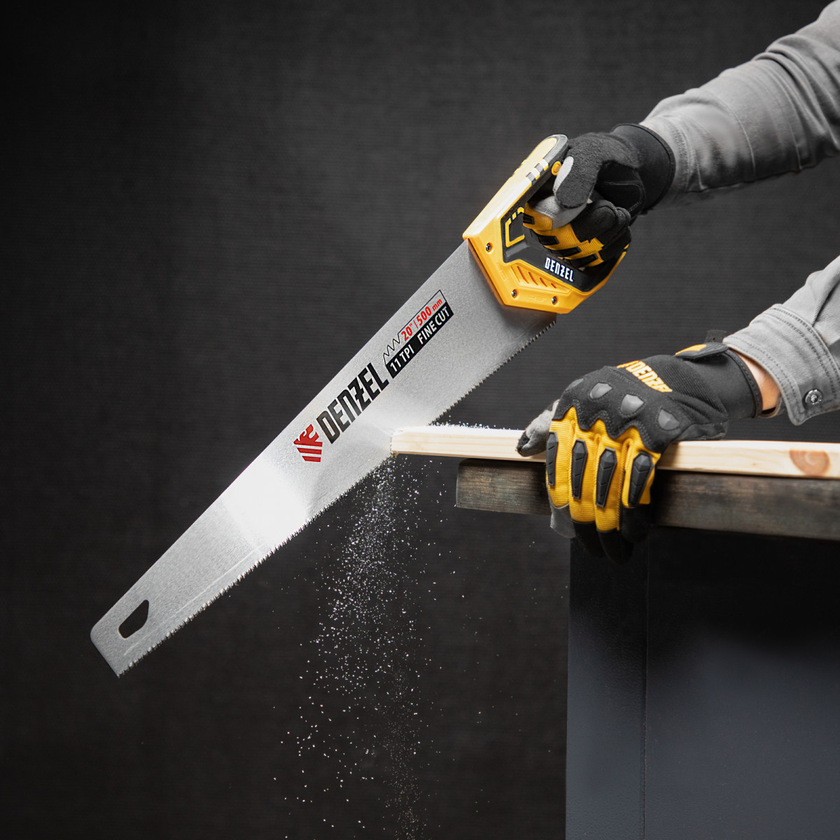 Ножовка по дереву, 500 мм, 11 TPI, зуб 3D, двухкомпонентная рукоятка Denzel