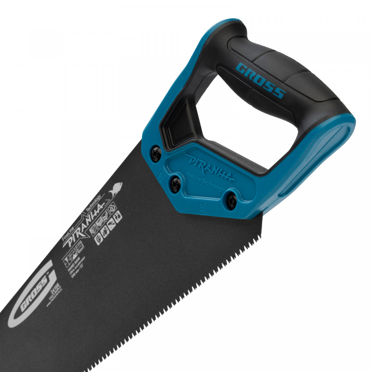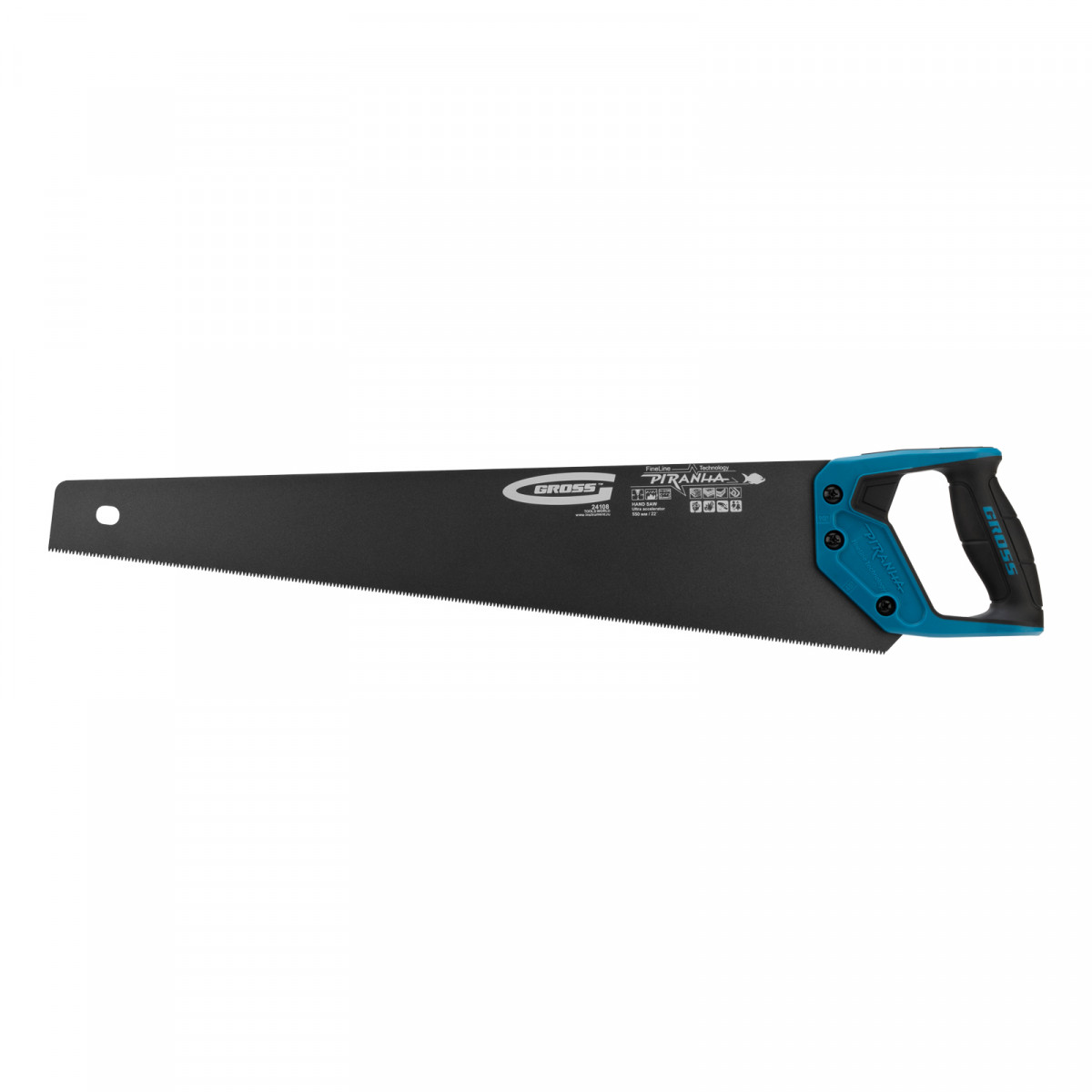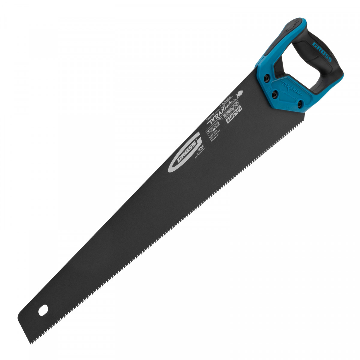 Ножовка по дереву "Piranha", 550 мм, 11-12 TPI, зуб-3D, каленый зуб, тефлоновое покрытие полотна, двухкомпонентная рукоятка Gross