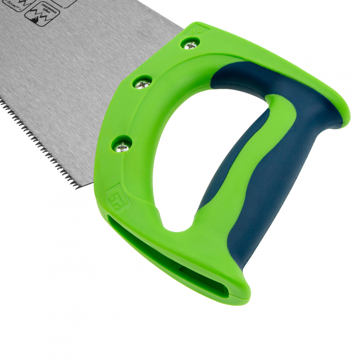 • Рукоятка из ударопрочного пластика прикреплена к полотну 3 винтами, что придает конструкции надежность.