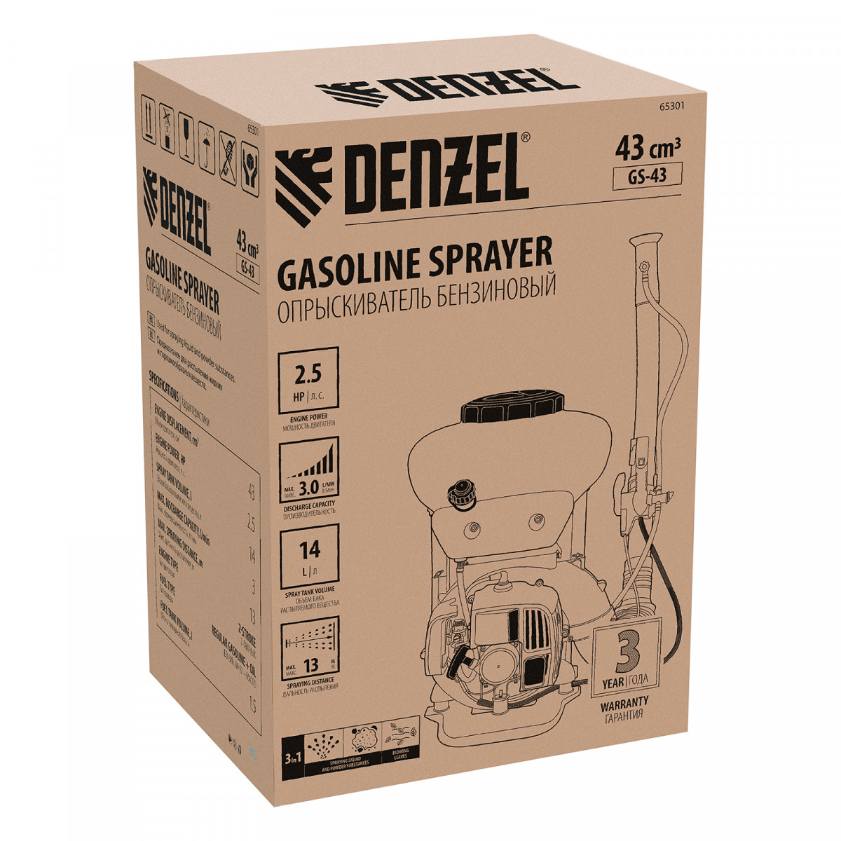 Опрыскиватель бензиновый GS-43, 43 см3, бак 14 л Denzel