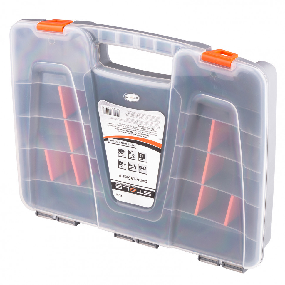 Двусторонние органайзеры «Stels» — универсальное решение для хранения ручного инструмента, крепежа и расходных материалов. Регулируемая планировка количества и размеров секций позволит наилучшим образом организовать пространство для хранения и обеспечит быстрый доступ к инструменту. Предназначены для хранения и транспортировки разнообразного инструмента и крепежа, а также рыболовных снастей и хозяйственно-бытовых принадлежностей.