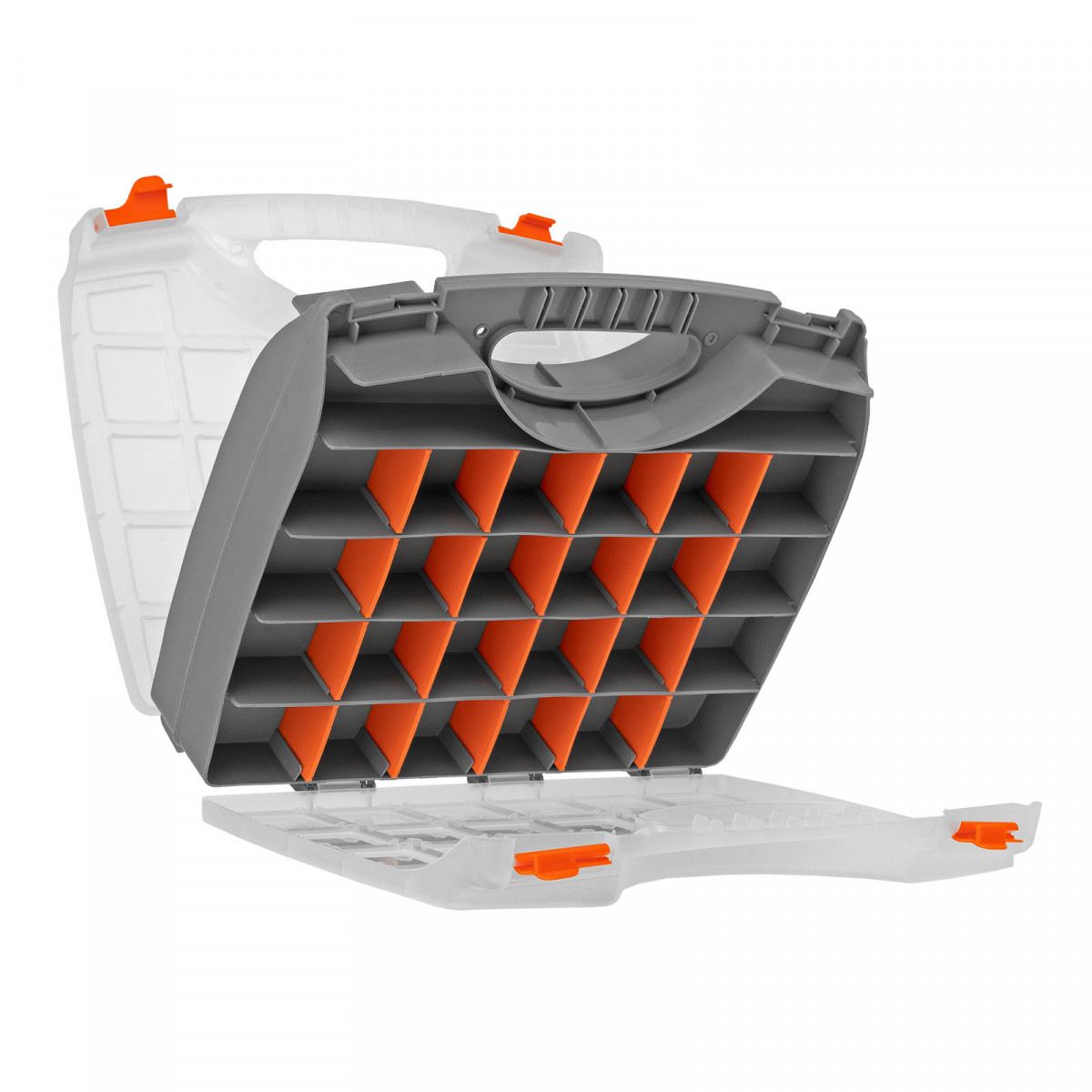 - Защелки и ручка обеспечивают удобство транспортировки органайзера.