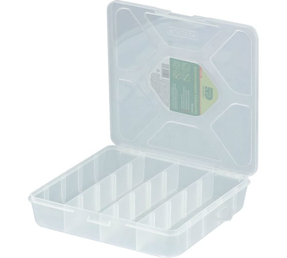 Крышка выполнена из полупрозрачного пластика для легкого определения содержимого без необходимости открывать органайзер.