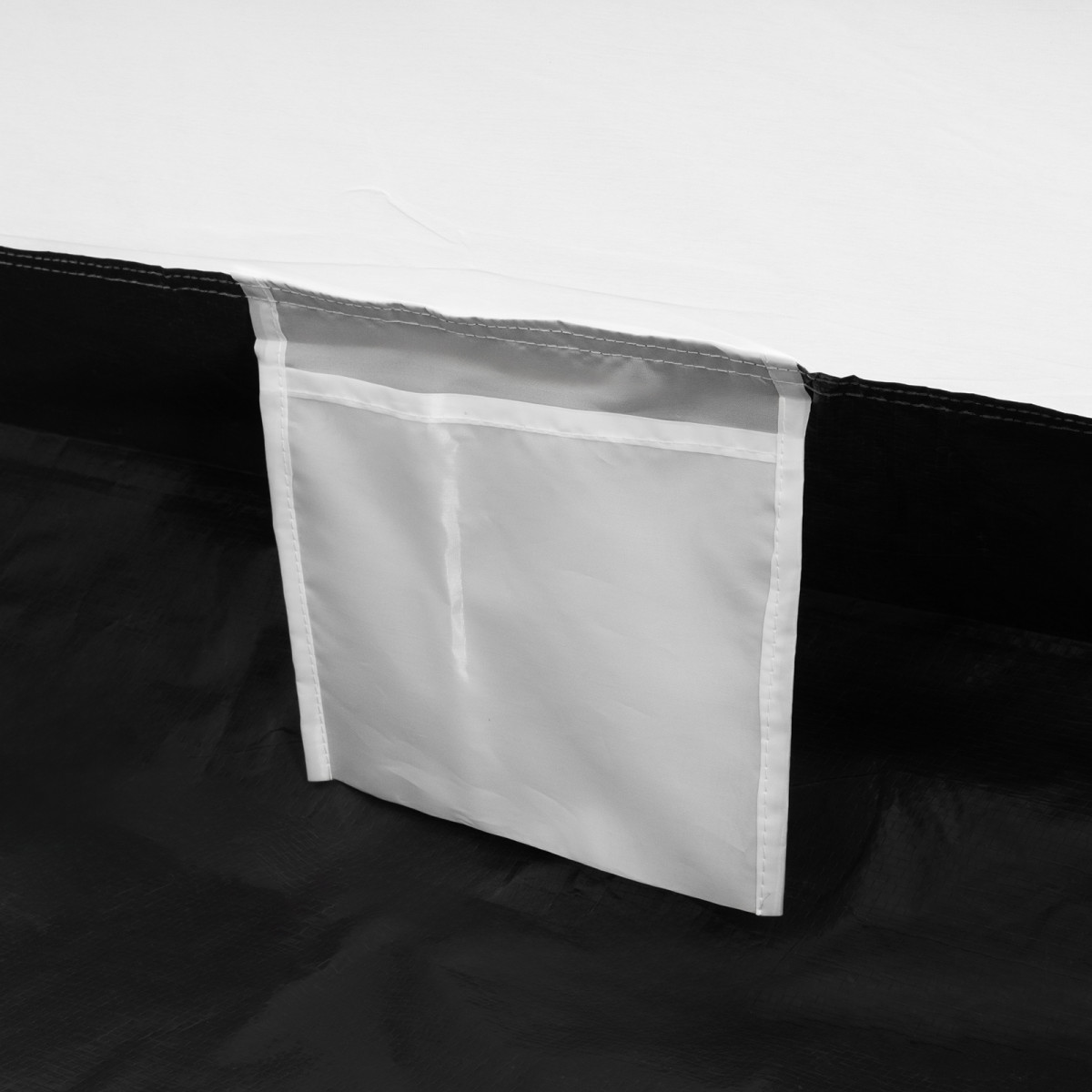 - Напольное покрытие выполнено из непромокаемого армированного полиэтилена 110 G, это гарантирует комфортный отдых даже при высокой влажности.