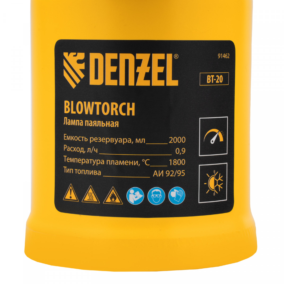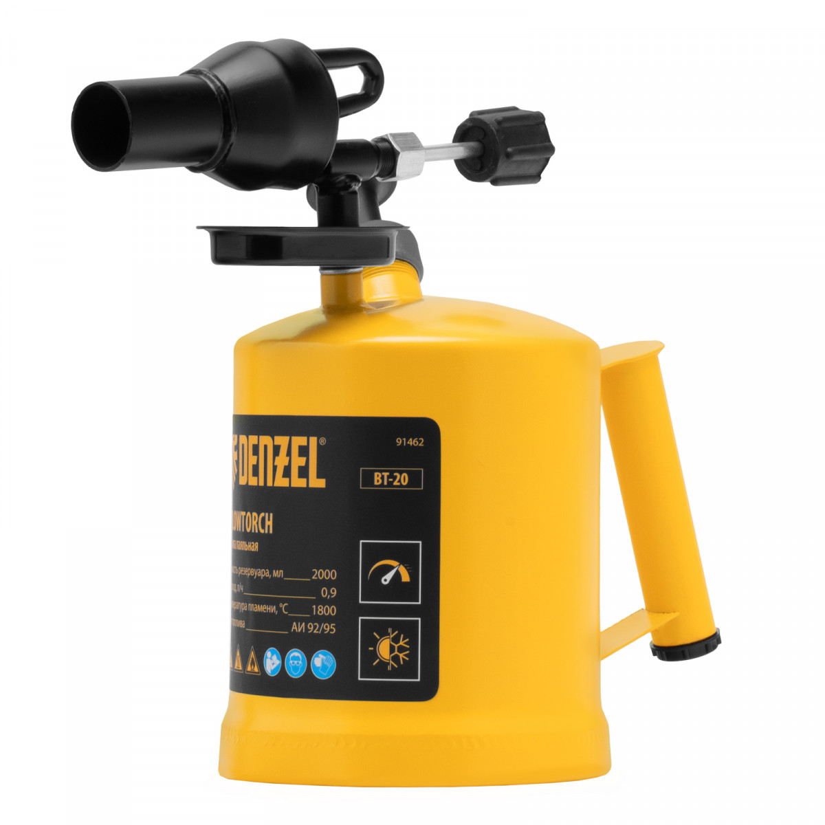 Паяльная лампа Denzel BT-20 91462 с баком объемом 2 л предназначена для нагрева поверхностей при помощи открытого направленного пламени. Полной заправки (1,5 л топлива) хватает больше чем на час работы при расходе 0,9 л/ч. Воздушный насос и форсунка высокого давления обеспечивают эффективную подачу топлива к эжектору. Лампа стабильно работает даже в ветреную погоду. Используется при выполнении ремонтных и демонтажных работ: пайки, сварки, ослаблении заклинивших резьбовых соединений, опаливании древесины, снятии лакокрасочных покрытий и других термических работ. Пригодится для обогрева двигателя. Также будет полезна в сельском хозяйстве и в быту.