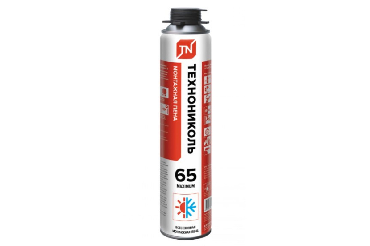 Монтажная профессиональная пена Технониколь 65 MAXIMUM всесезонная TN528370 представляет собой однокомпонентный полиуретановый материал в аэрозольной упаковке. Продукт отличается хорошим первичным расширением, повышенным объёмом выхода пены.