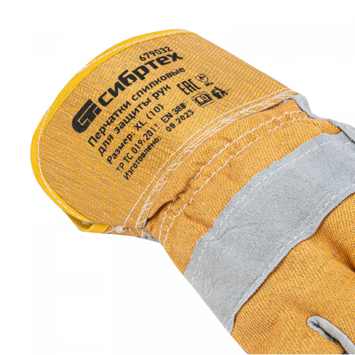 Перчатки спилковые комбинированные, усиленные, утолщенные, размер XL, Сибртех