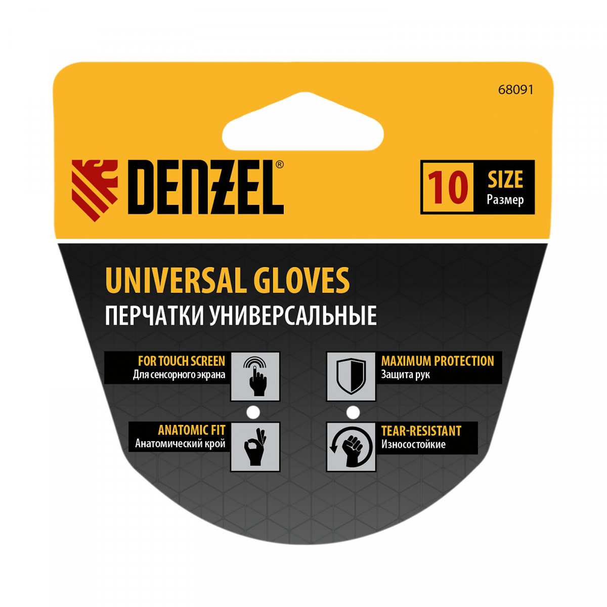 Перчатки универсальные, двойные, работа с сенсорным экраном, размер 10 Denzel