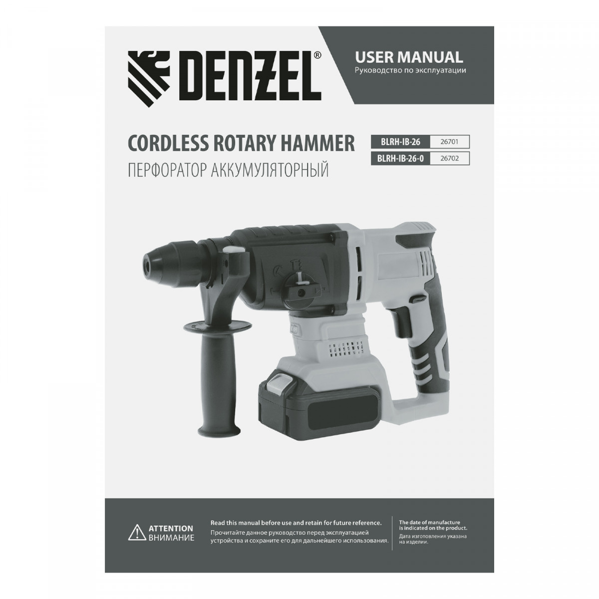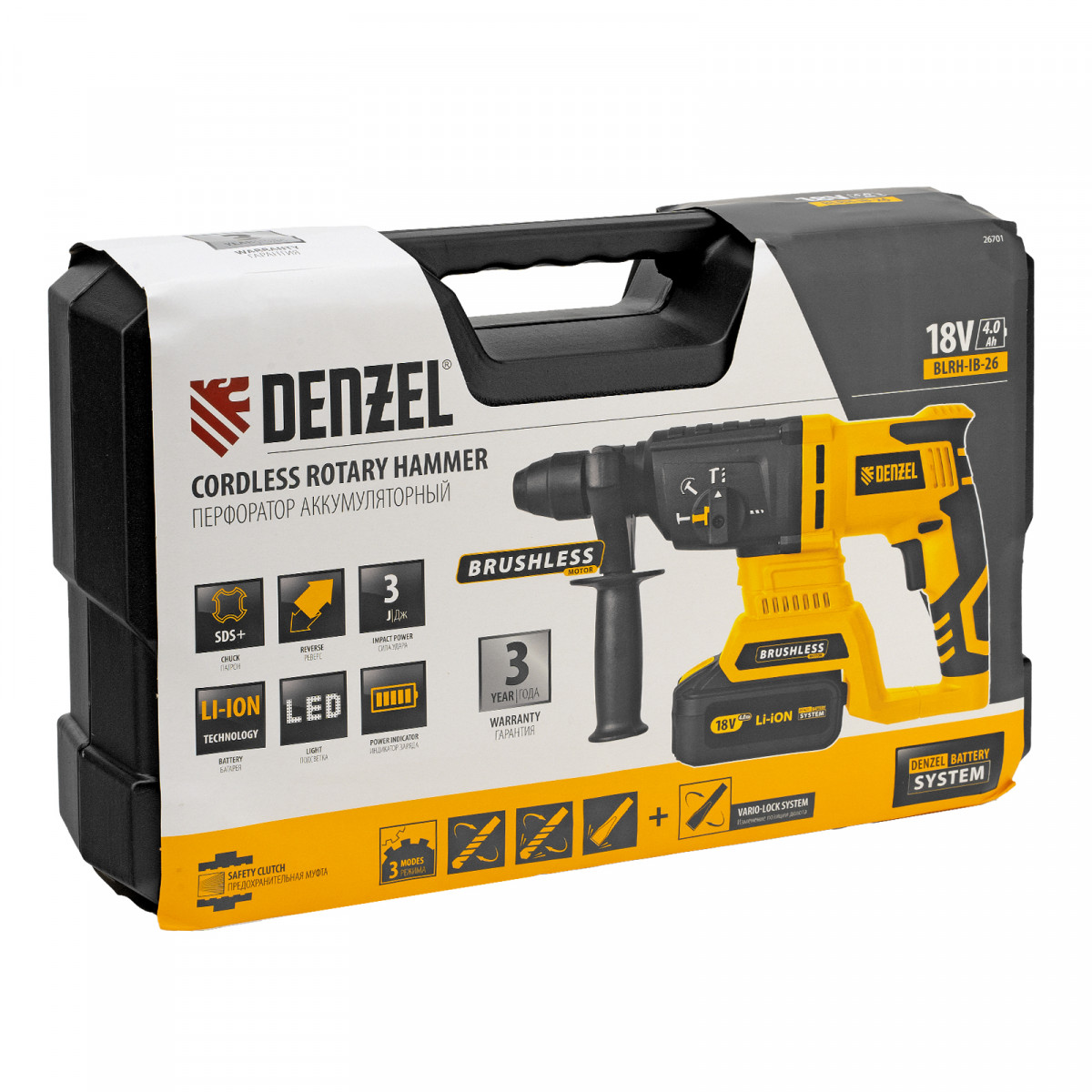 Перфоратор аккумуляторный BLRH-IB-26 Li-Ion, 18 В Denzel