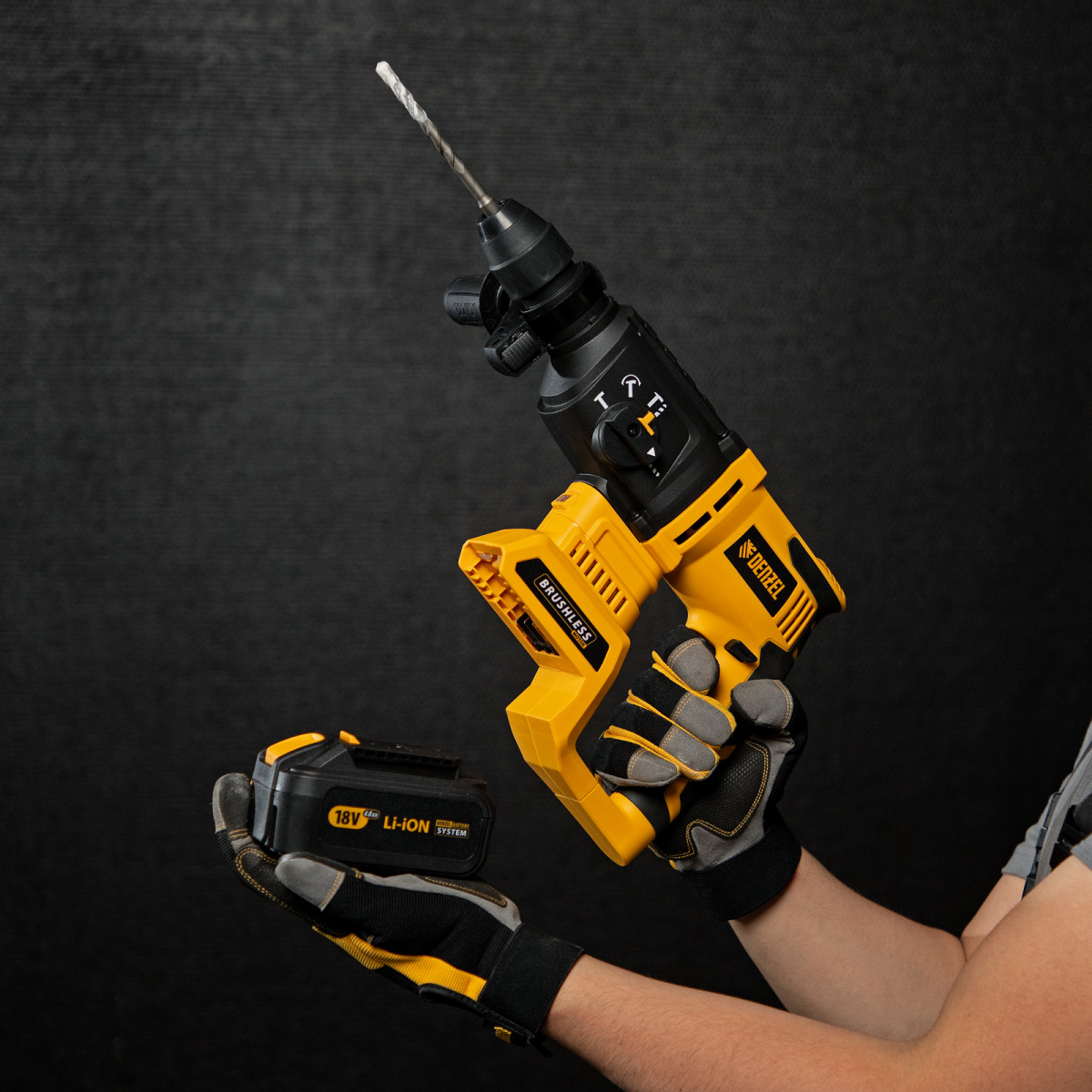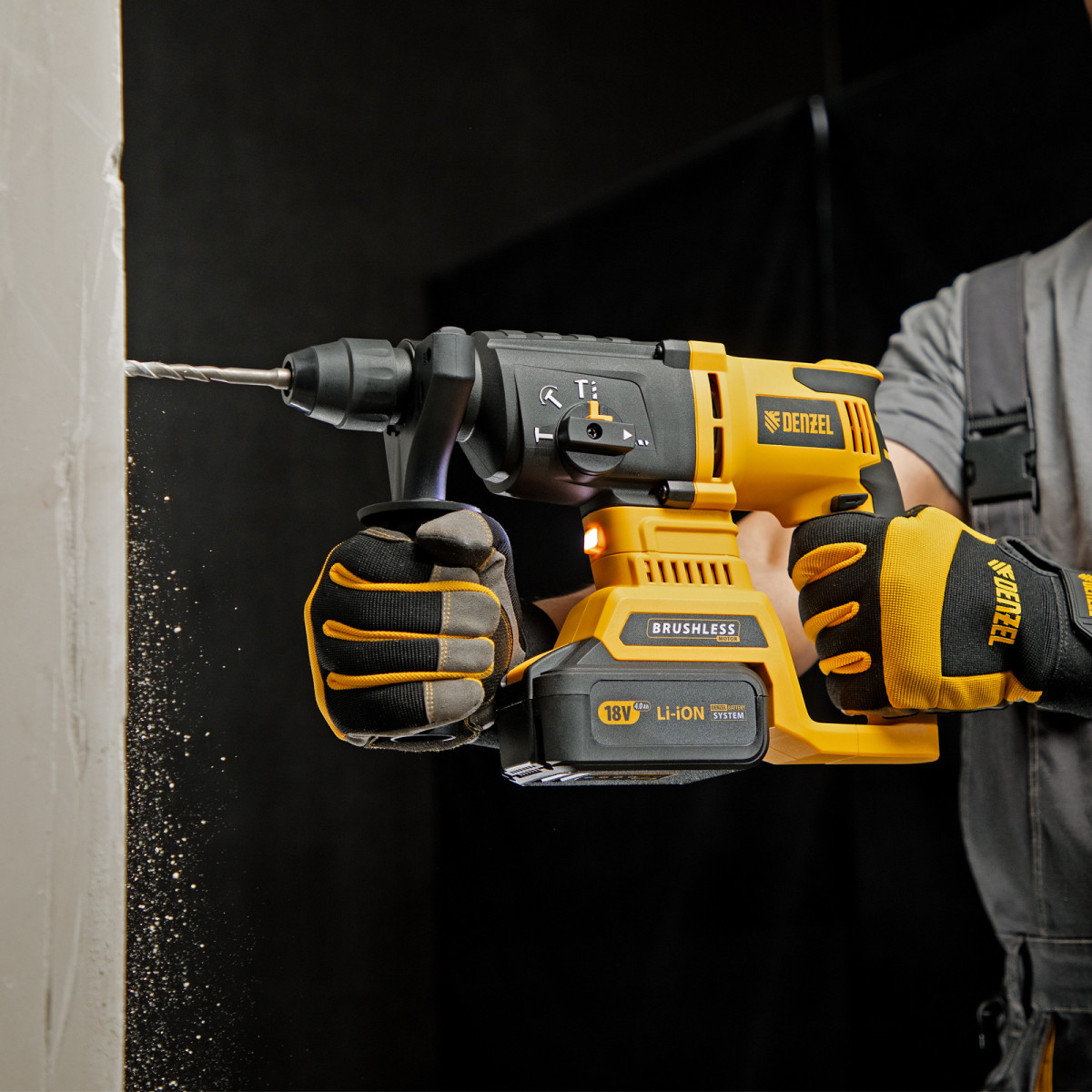 • Полная комплектация — к инструменту прилагается аккумулятор емкостью 4 Ач, зарядное устройство, дополнительная рукоятка и ограничитель глубины сверления.