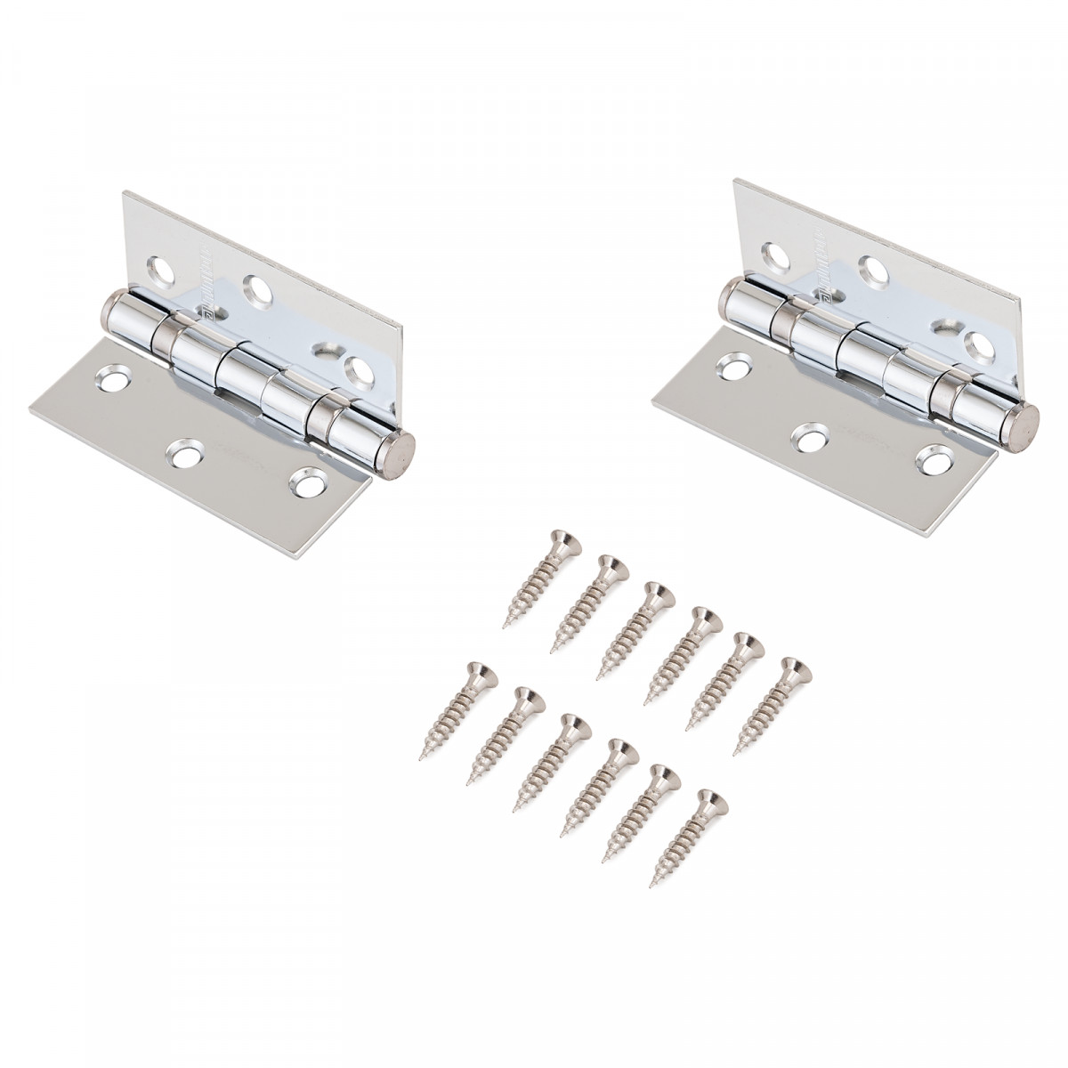 Петля дверная универсальная. Предназначена для установки на левые и правые двери. Материал - сталь, гальваническое покрытие. Размер петли - 77х64х2,5 мм. 2 подшипника, плоский колпачок.
