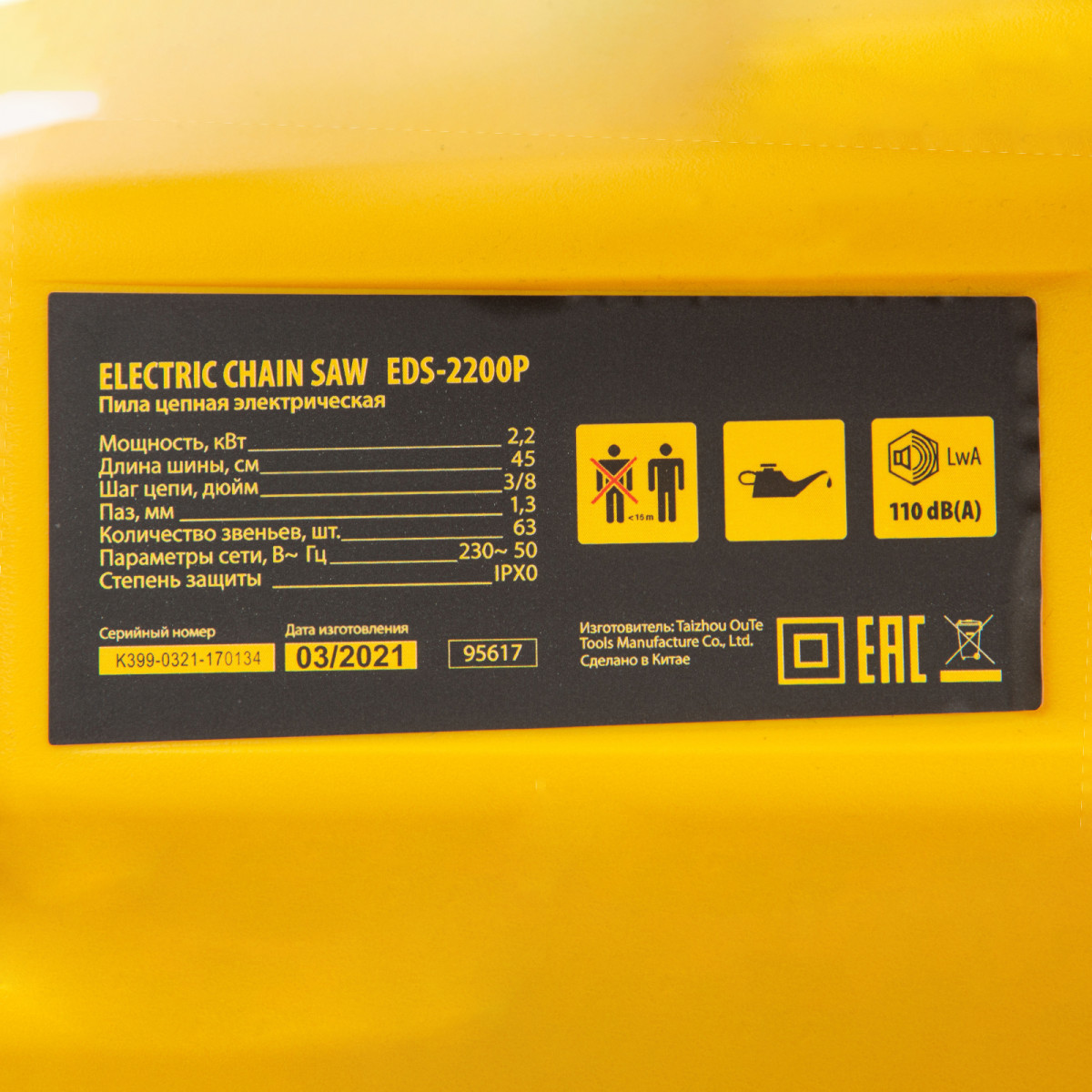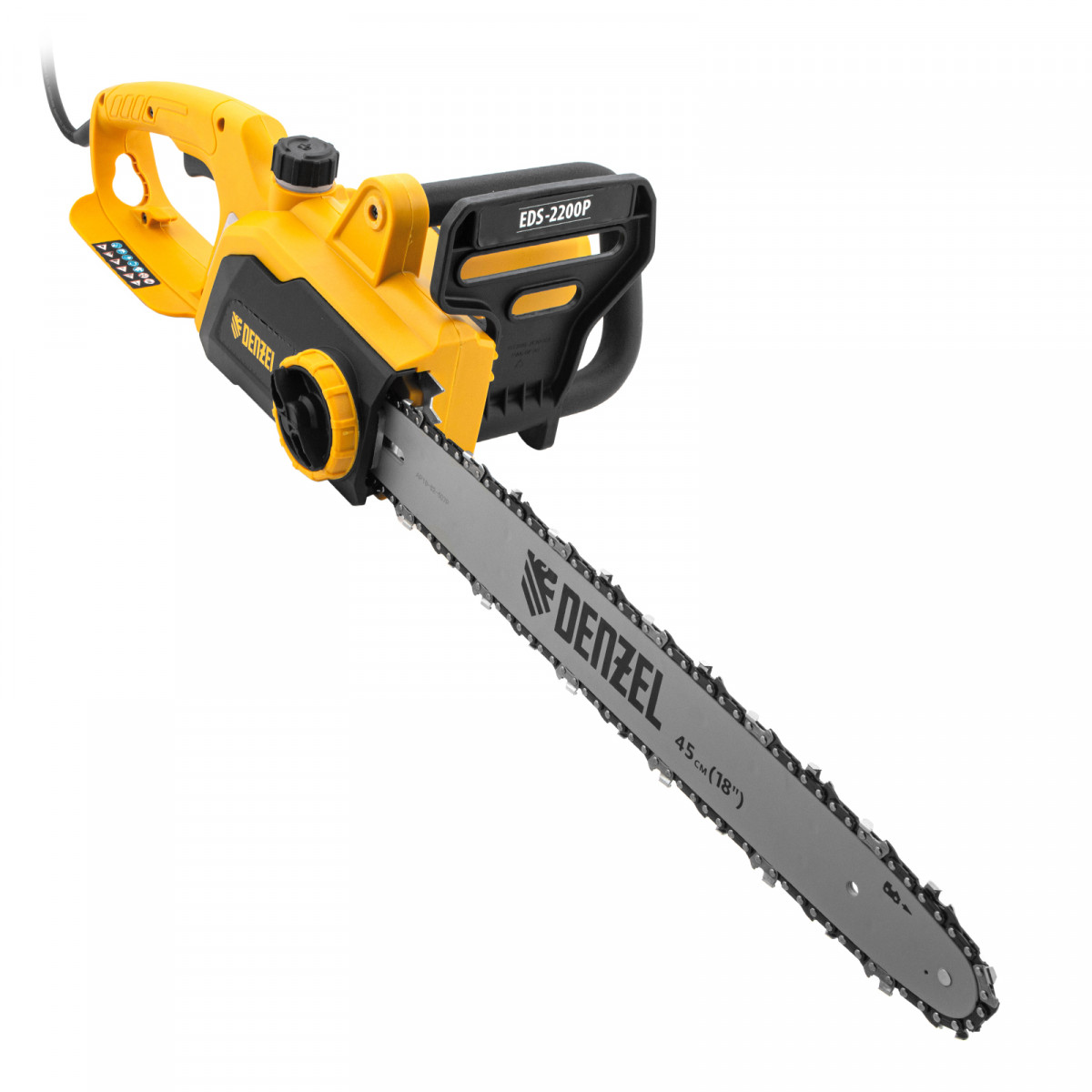 Пила цепная электрическая EDS-2200P, 2.2 кВт,поперечная, шина 45 см, шаг 3/8, паз 1.3 мм, 63 звена Denzel