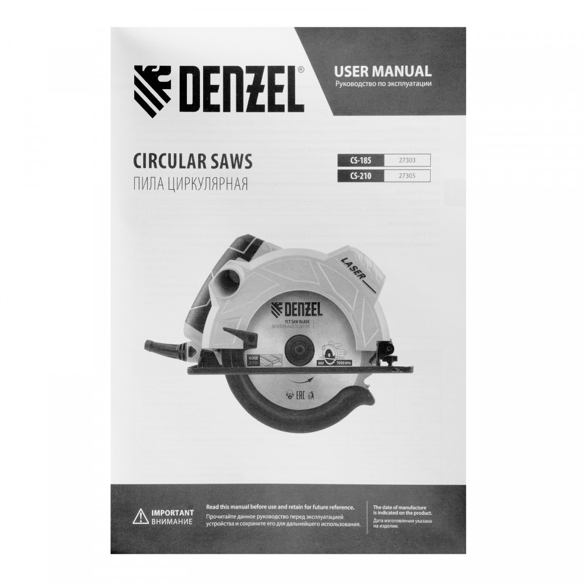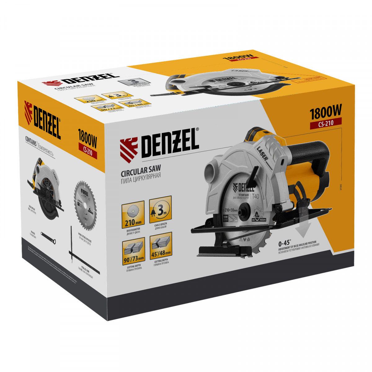 Пила циркулярная CS-210, 1800 Вт, 210 мм Denzel