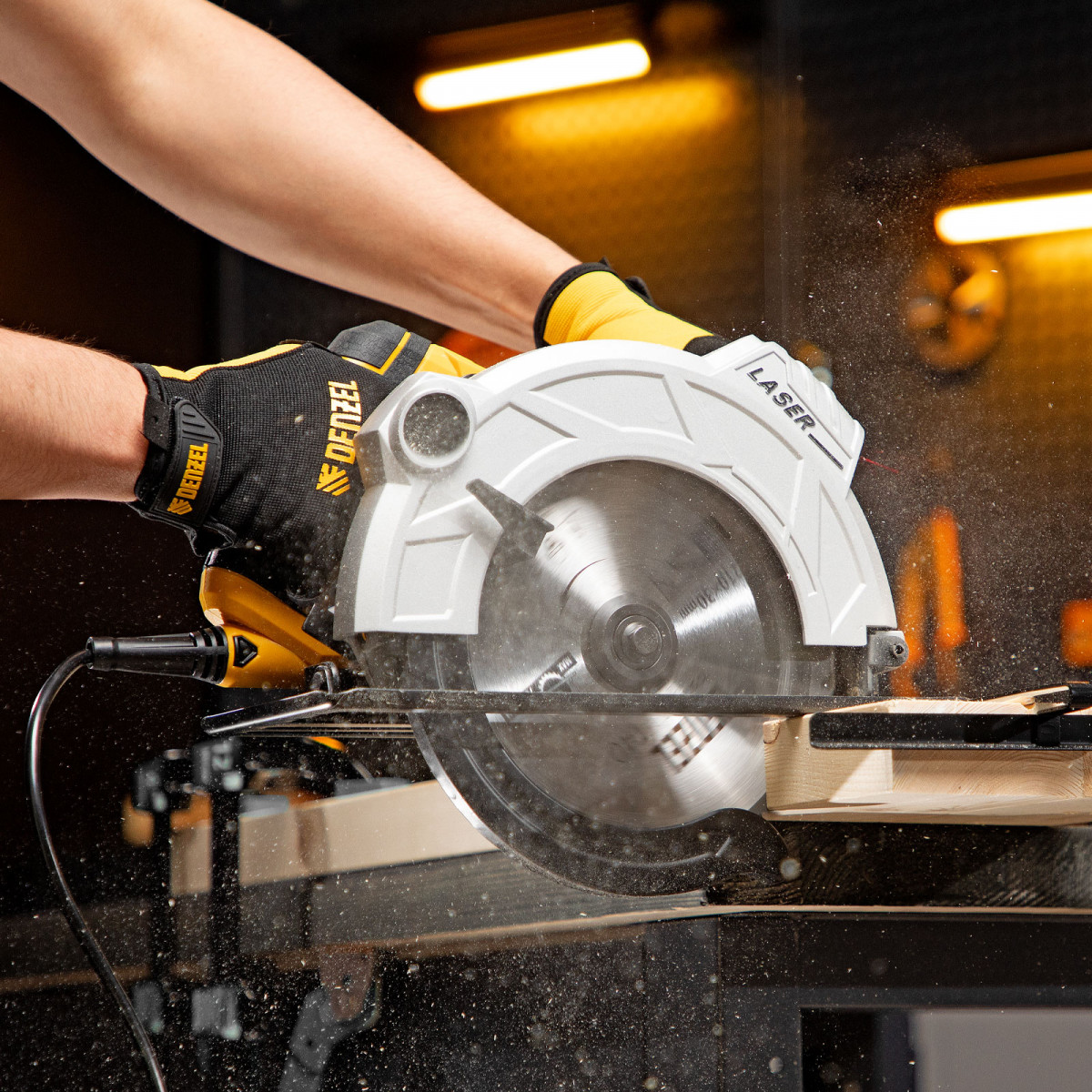• Высокая точность — лазерный указатель, показывающий линию предстоящего среза, и стальная параллельная направляющая помогают осуществлять ровные прямые пропилы без дополнительной разметки.
