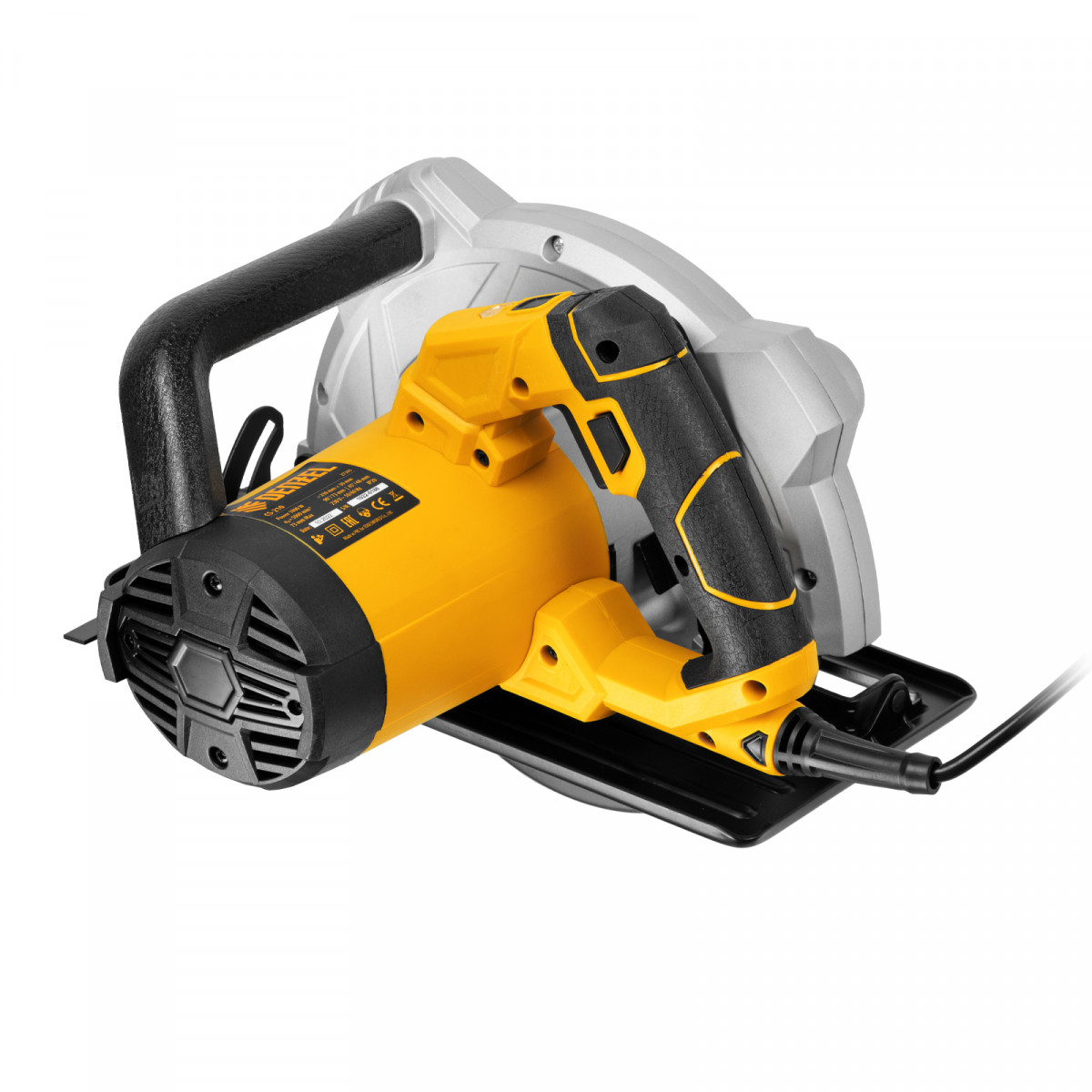 • Дополнительная рукоятка — инструмент удобно удерживать второй рукой, что минимизирует риск соприкосновения с пильным диском.
