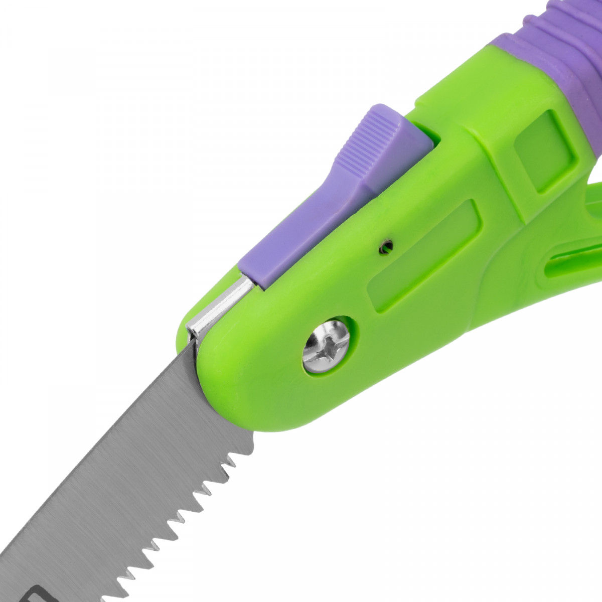 • Надежная конструкция — кнопочный фиксатор удерживает полотно в рабочем или сложенном положении.