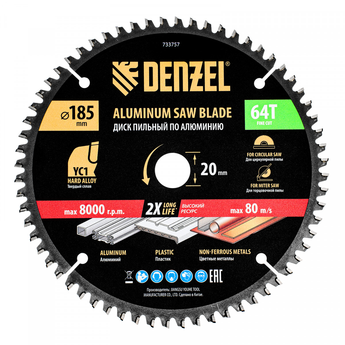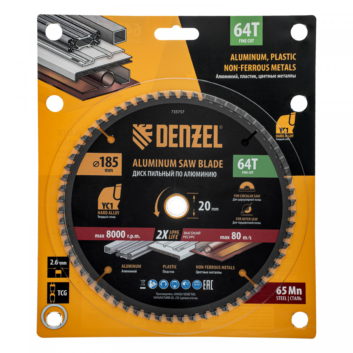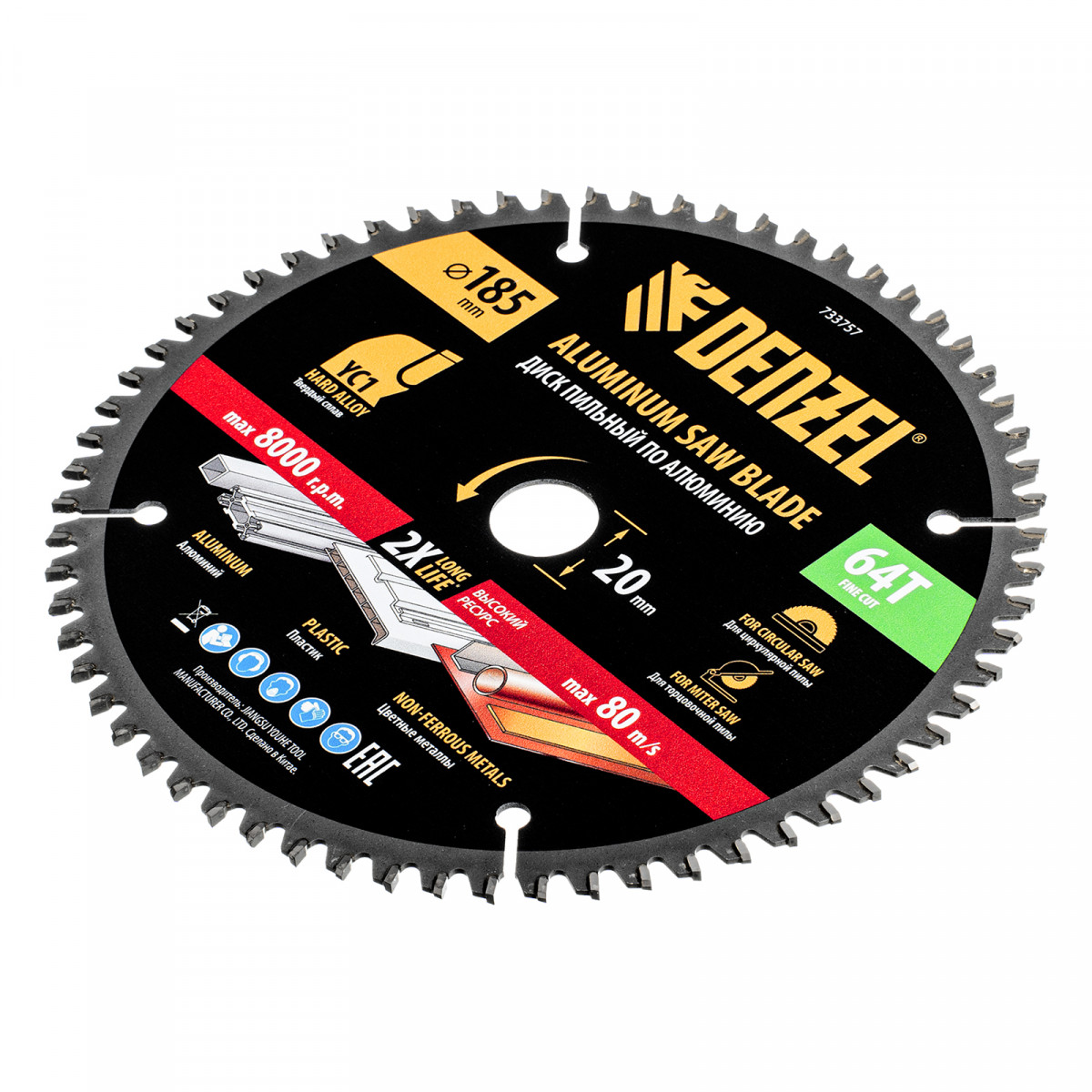 Пильный диск по алюминию ф185 х 20 мм, 64 зубьев Denzel
