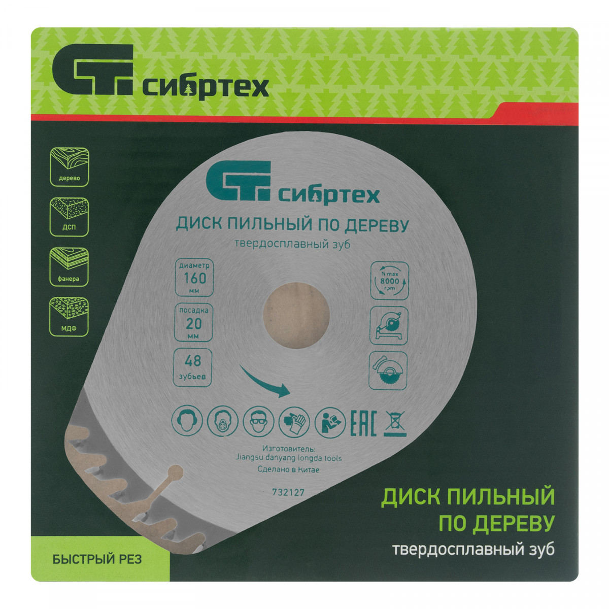 Пильный диск по дереву, 160 х 20 мм, 48 зуба, кольцо 16/20 Сибртех
